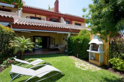 شقة جميلة مع حديقة خاصة وجاكوزي. يتكون العقار من ممر داخل، غرفة معيشة وطعام، مطبخ مفتوح مجهز ومجهز بالكامل، 3 غرف نوم، حمامين، أرضيات رخامية، تكييف هواء ساخن وبارد، شرفة حديقة بمساحة 70 متر مربع، باب أمان. 1 مرآب تحت الأرض. مجتمع رائع مع مساحات خضراء بمساحة 10,000 متر مربع مع حدائق، 4 حمامات سباحة خارجية، ملاعب تنس مجداف، مصاعد. خطوات من الشاطئ، المطاعم، كورت إنجلس وكل أنواع الخدمات والترفيه. شروط...