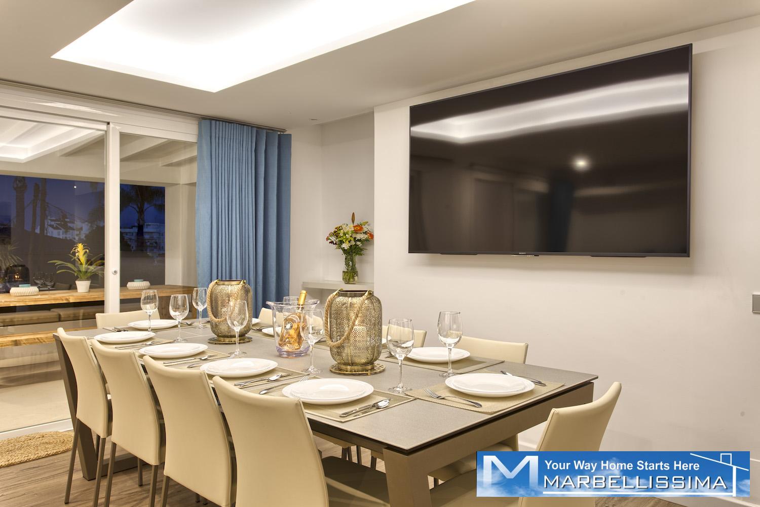 100 megabytes fibra òptica Internet, 65 'TV 4K amb Internet, Netflix, Spotify, YouTube, BEIN, 300W Bluetooth Sound System w/subwoofer, portes sense clau (sistema de codi), alarma de seguretat, increïbles vistes de la Concha muntanya