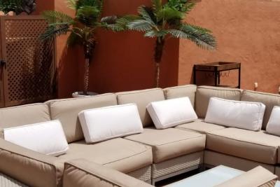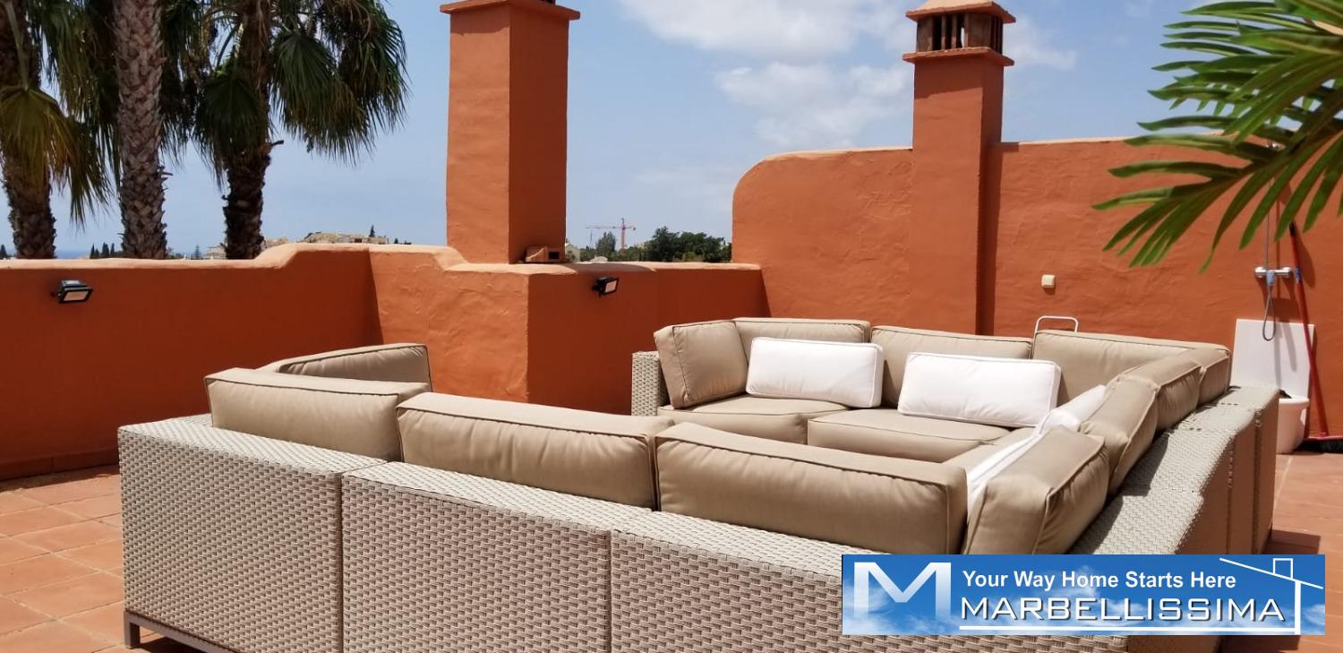 Fem parkeringspladser, elevator. Hus på Golden Mile, Marbella, med privat have, pejs og solarium med grill. Hus til salg i Marbella, 850.000 €