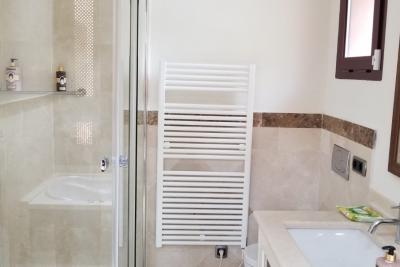 Fremragende hus på tre niveauer. Der er entré, elevator, stue med pejs og adgang til haven, køkkenet og har også stigninger i haven. Det har tre soveværelser, tre badeværelser, et toilet, vaskeri område i kælderen, der har direkte adgang til den private garage med plads til 5 biler, et solarium med grillplads, bruser, pergola og masser af plads nyder smuk udsigt.
