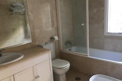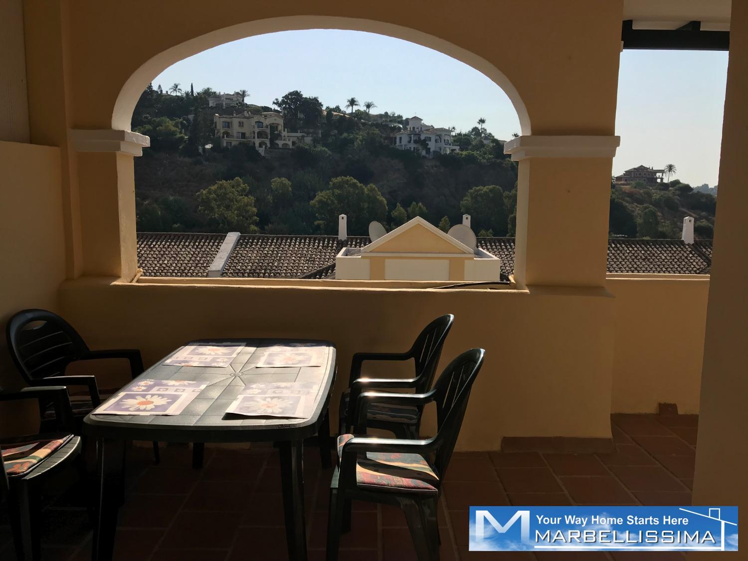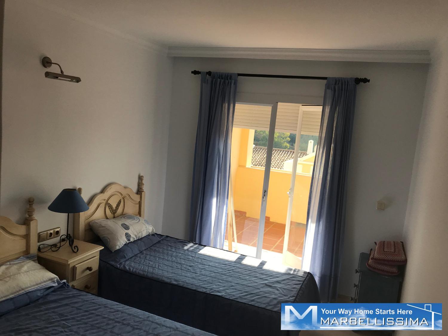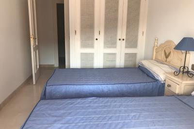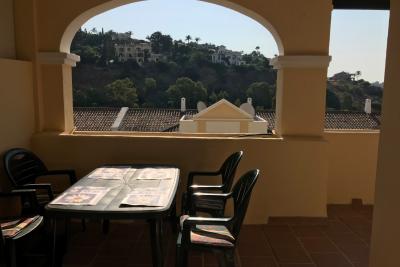 Close to golf courses in a very quiet area close to golf courses. It is a semi ground floor of 2 bedrooms, two bathrooms, fitted kitchen with access to the covered utility room, access to the terrace from both bedrooms. Beautiful views to the mountain and to the sea in the distance from its terrace. It offers air conditioning, bed linen, kitchen utensils. The costs of water and electricity or any expenses connected to the property counters are pay by the tenant. For weekly stays, the costs of water, electricity consumption and any expenses connected to the meters of the property are included. IBI, trash and community costs are the responsibility of the landlord. Maximum occupancy is 4 guests. Minimum stay from 1 week. Price: Apply.