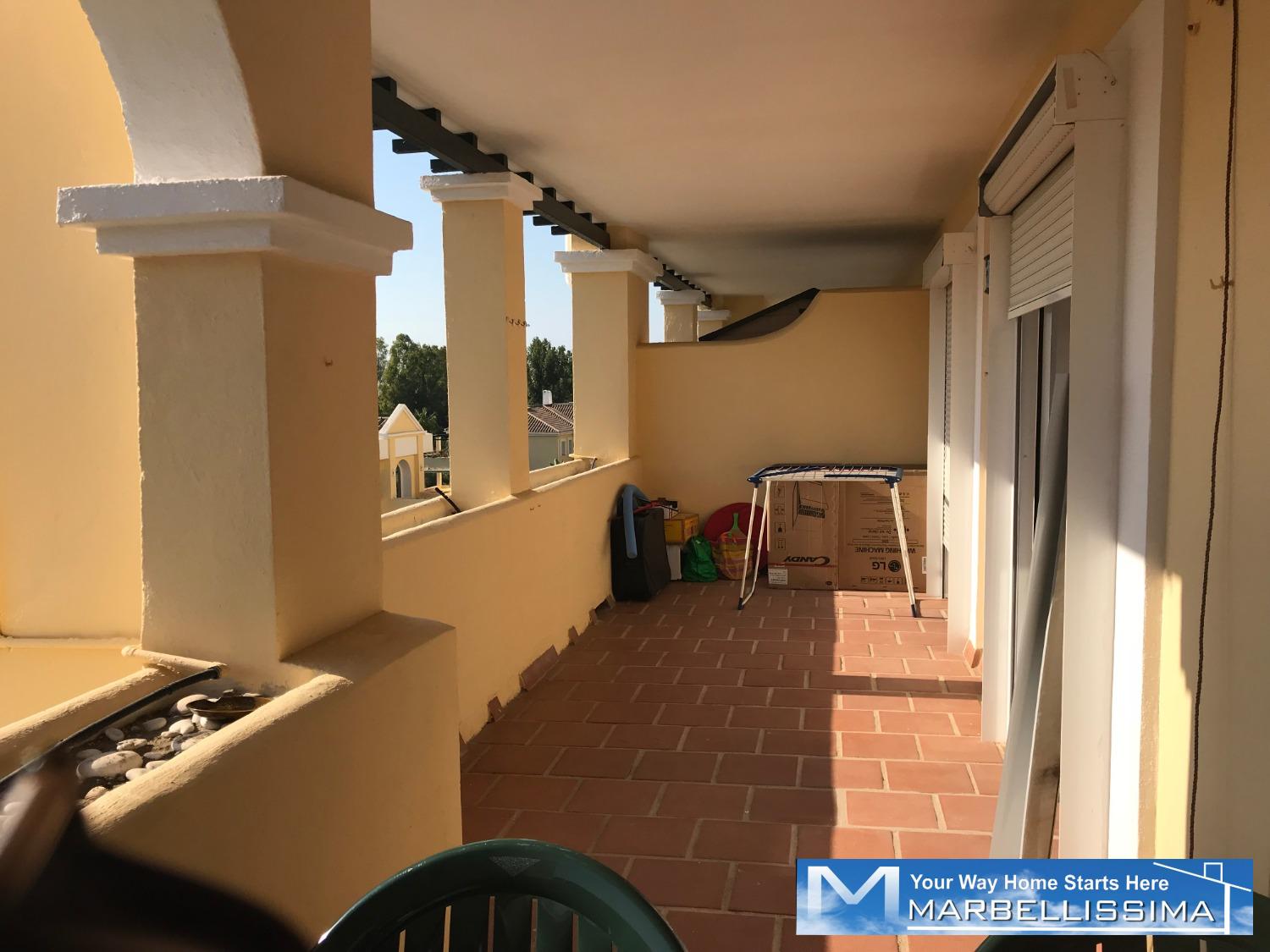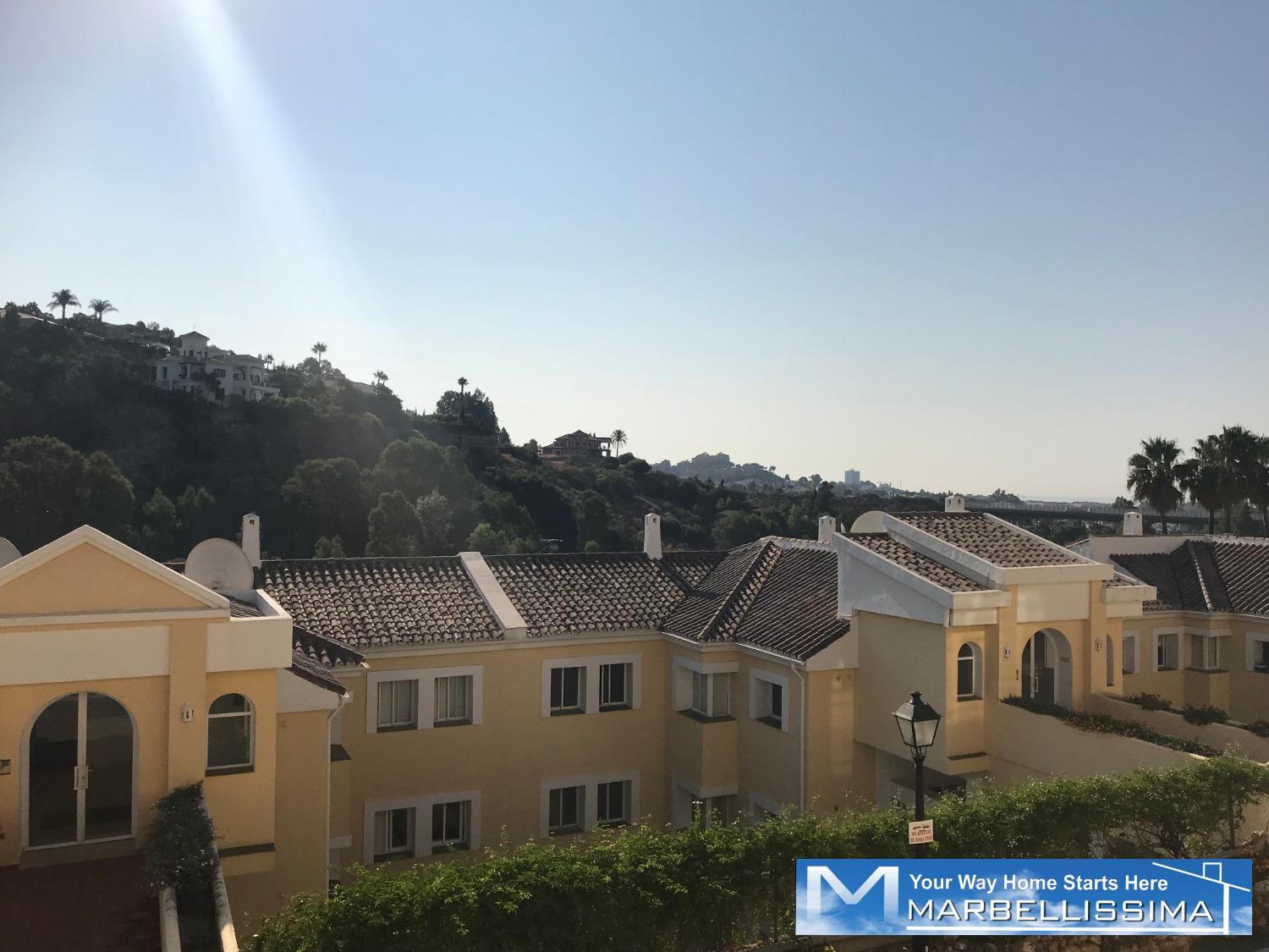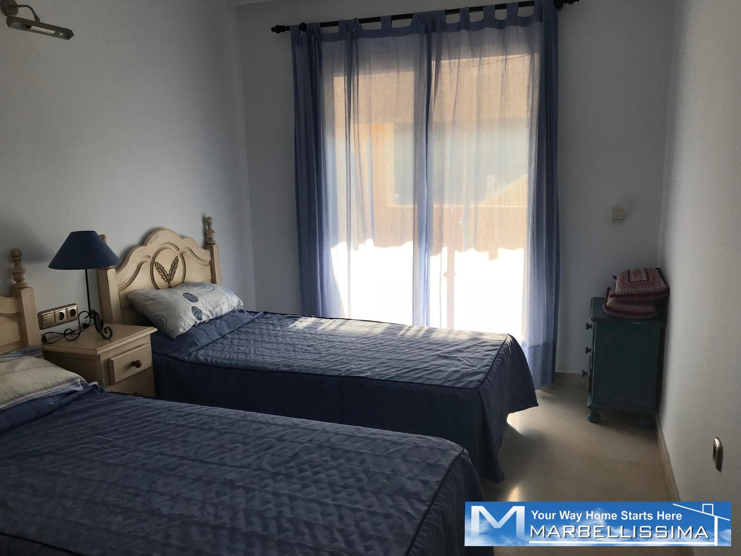 Close to golf courses in a very quiet area close to golf courses. It is a semi ground floor of 2 bedrooms, two bathrooms, fitted kitchen with access to the covered utility room, access to the terrace from both bedrooms. Beautiful views to the mountain and to the sea in the distance from its terrace. It offers air conditioning, bed linen, kitchen utensils. The costs of water and electricity or any expenses connected to the property counters are pay by the tenant. For weekly stays, the costs of water, electricity consumption and any expenses connected to the meters of the property are included. IBI, trash and community costs are the responsibility of the landlord. Maximum occupancy is 4 guests. Minimum stay from 1 week. Price: Apply.