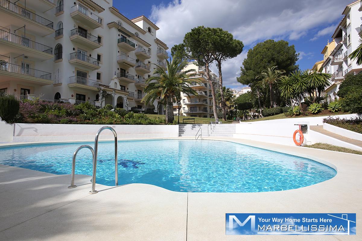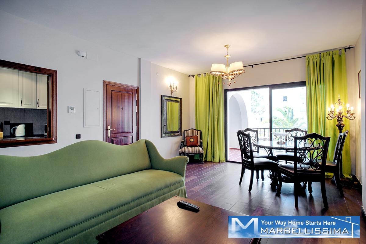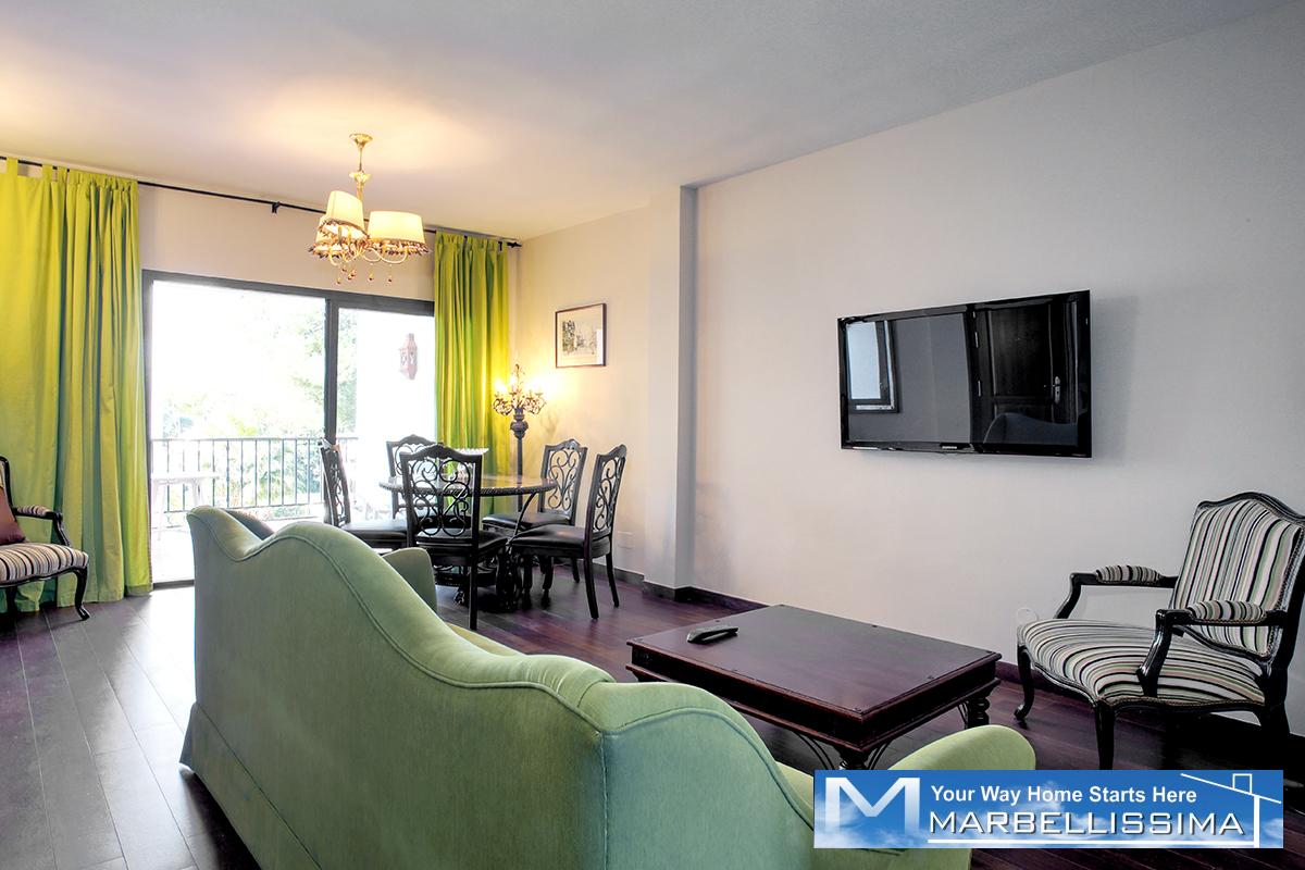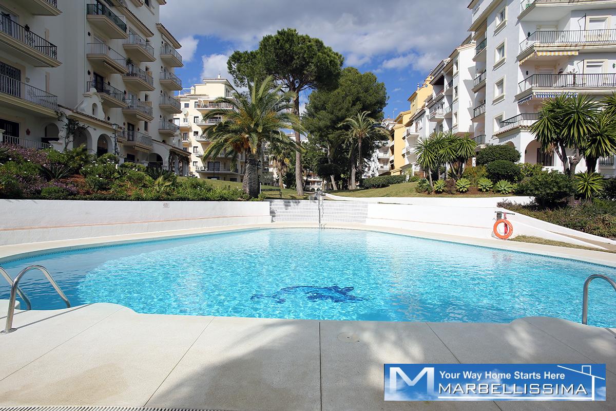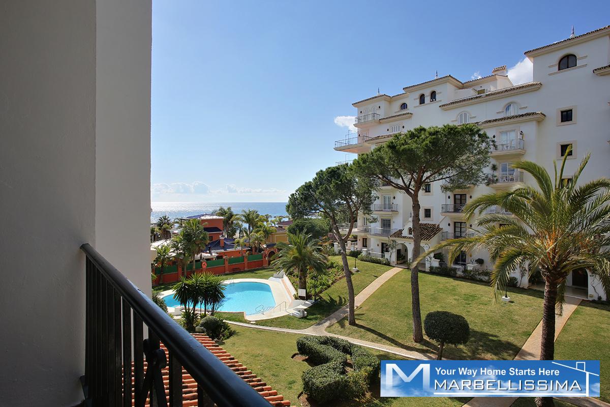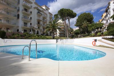 Close to the well-known Ocean Beach Club in the famous Puerto Banus, Marbella. Residential near the sea with two outdoor pools, green areas with well maintained gardens. Access door to the beach. The property enjoys a living room, independent kitchen, terrace with sea views of approximately 30 m2, 3 bedrooms, 2 bathrooms. air conditioning. The property is rented furnished, with beds linen, and kitchen Appliances. The rate Includes electricity, water and WIFI consumption. Parking included.