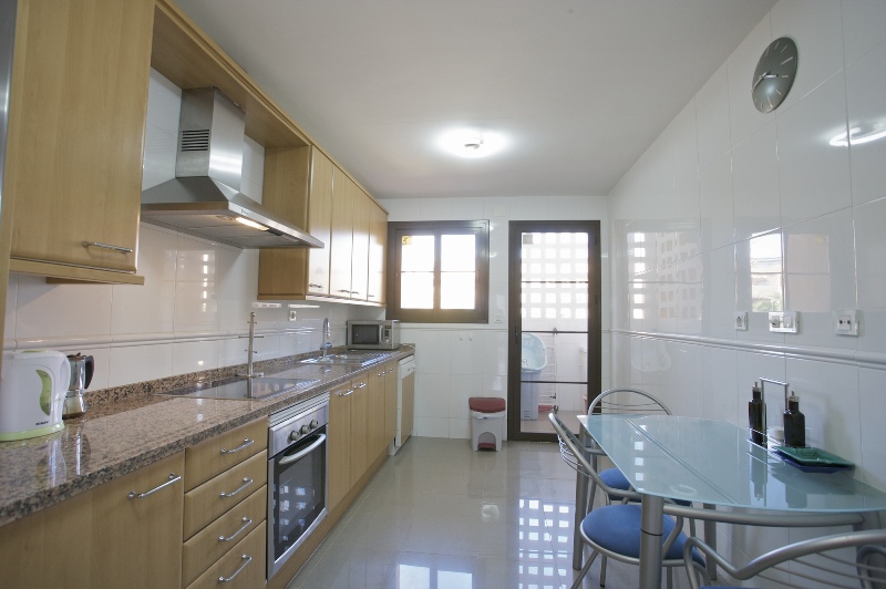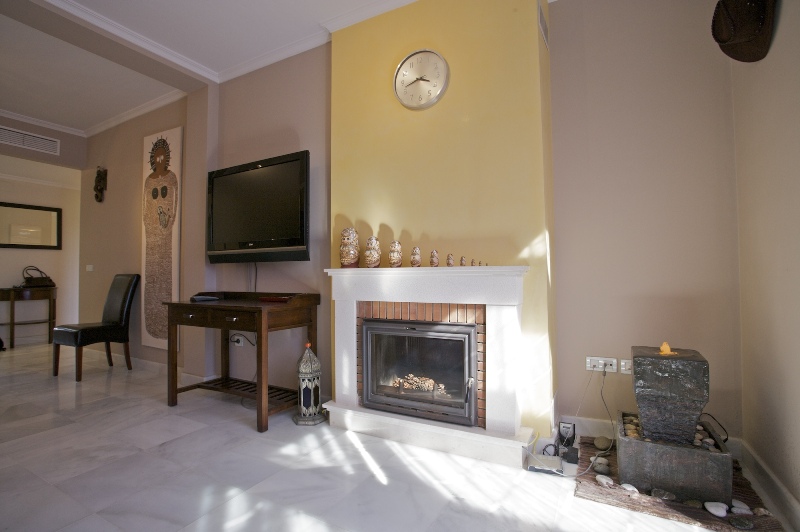 More features: Independent kitchen with access to the laundry area. Bathtubs in bathroom. One double bed. Two individual beds. It has also air conditioner hot and cold, fireplace, nicely furnished, high quality mattress, tv plasma 42” in the living room, and TV in the bedroom (possibility to have sky TV), 300 MB “collective/Community” Wi-Fi fiber, private garage, 7 outdoor swimming pools, gym, 2 paddle courts, saunas, security cameras all around the urbanization and a security guards 24 hours.