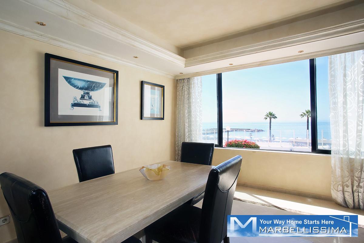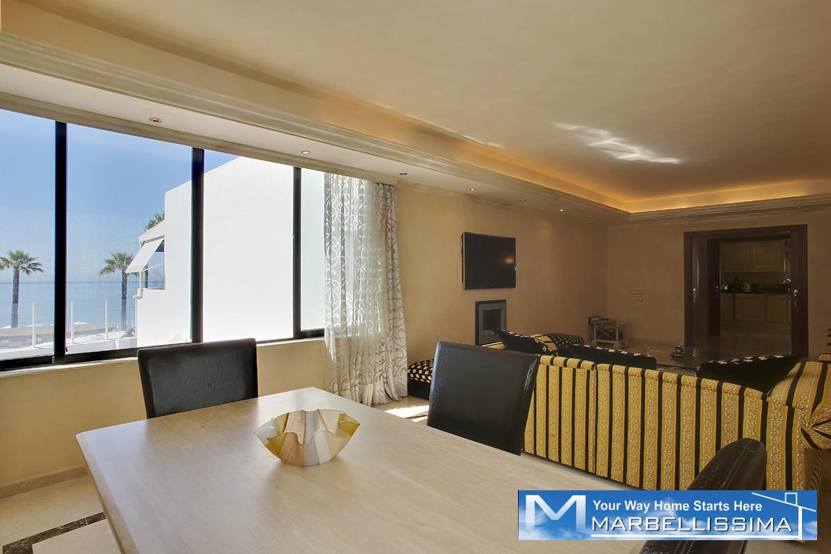 Located in Puerto Banús on the beachfront. Privileged location steps from high-end shops, restaurants, bus stop, easy access to the motorway, and many services and entertainments.