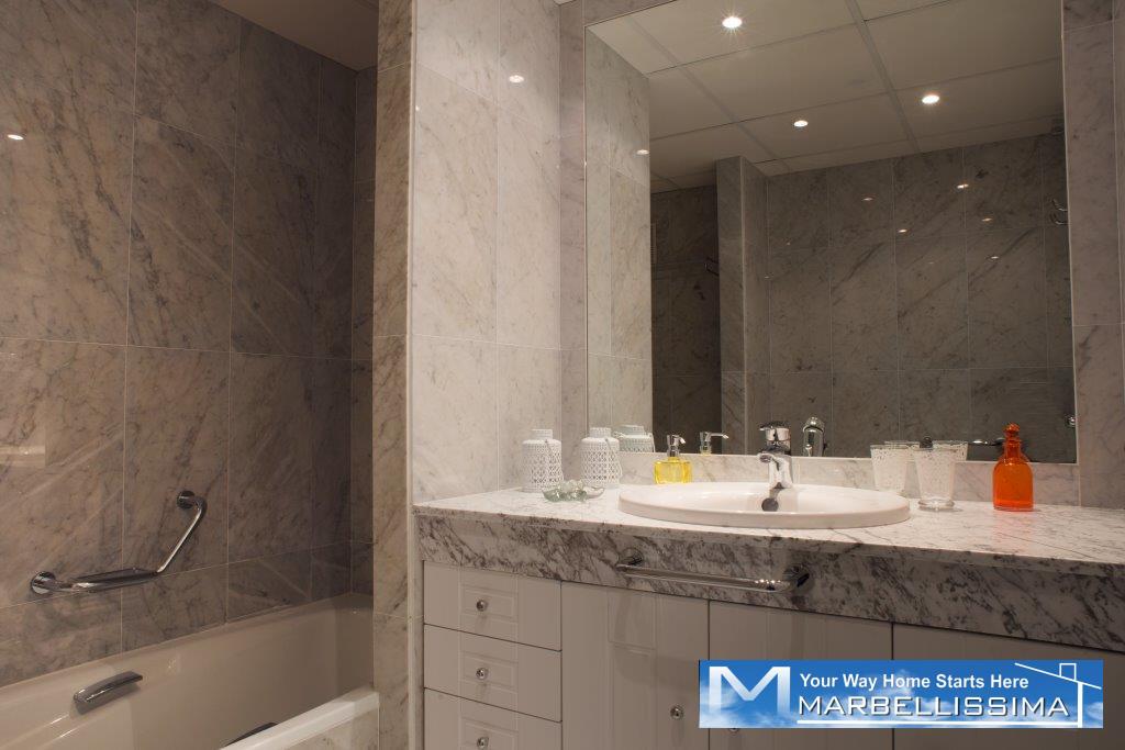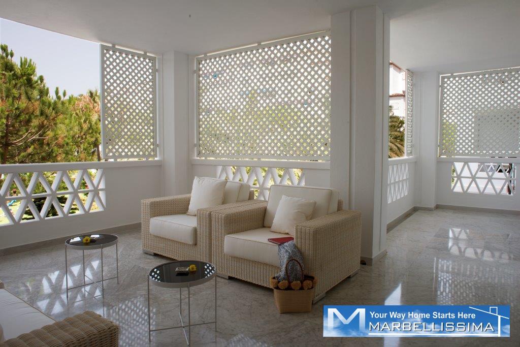 Stunning Beachfront complex in Puerto Banus. This incredible apartment is located on the first floor and enjoys beautiful views to the gardens and consists of an entrance hallway, a living room, access to a sunny west facing terrace of 30 m2, three bedrooms with fitted wardrobes, 3 bathrooms all finished in marble, fully fitted kitchen with access to the covered laundry room. More features: marble flooring, air conditioning hot and cold, intercom, double glazing, a private underground garage and many more interesting features.