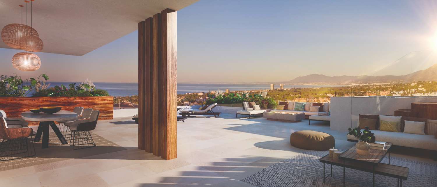 This innovative boutique recently developed off-plan in Marbella consists of 14 units, consisting of one, two, three and four bedroom homes. They are spacious apartments and penthouses, each with its own personality and bright with spectacular sea views located on the first line of the golf course and avant-garde design. The ground floor is with private gardens, and the penthouses with spectacular terraces and private pool.
