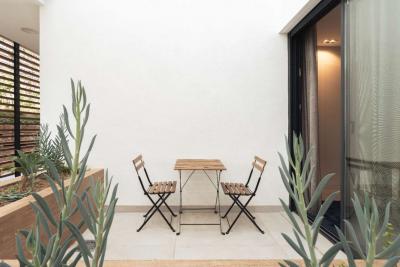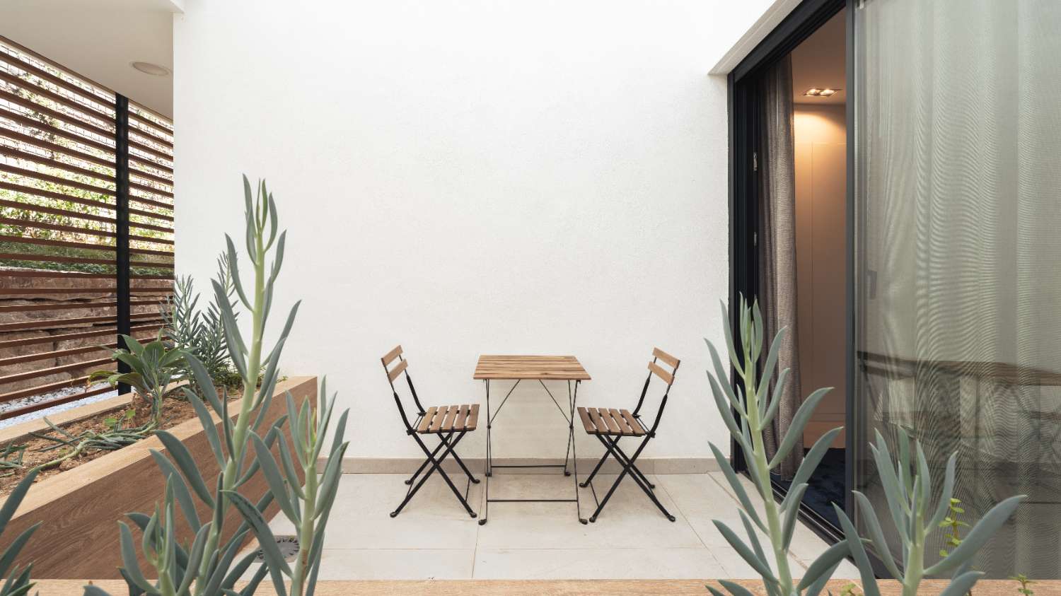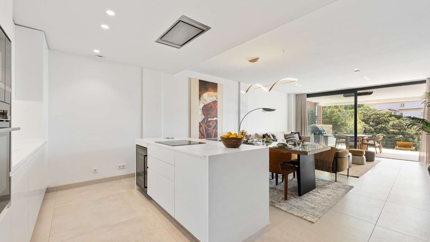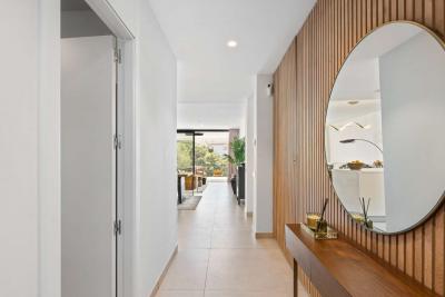 This remarkable south facing home is in impeccable condition, built in 2024, featuring contemporary design, private garden, oversized windows, large terrace, fully equipped open plan kitchen, hot and cold air-conditioning, two parking spaces and storage room.