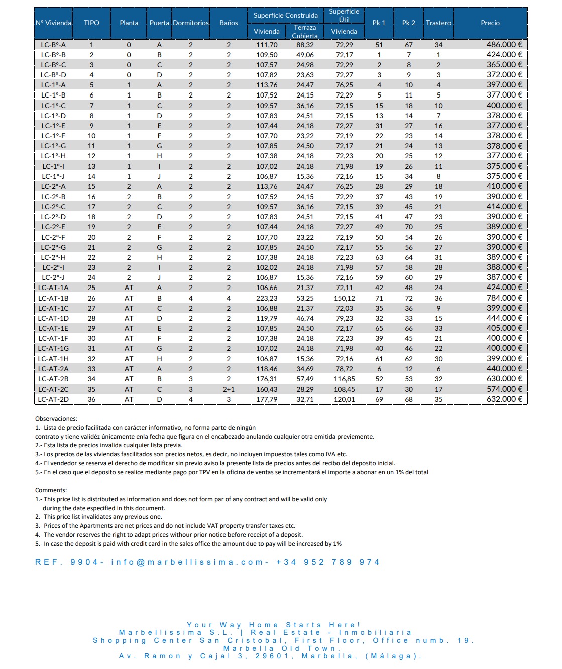 2 Bedrooms apartment from 365.000€ up to 486.000€. 2 Bedrooms apartment Built from 102,00 m2 to 119,00 m2.