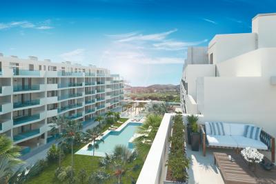 New development for sale, 146 homes of 1, 2, 3, bedroom, and penthouses of 3 bedroom. Phase 2, in block 2 is off plan project, with modern and functional design, all facing south, with good-sized terraces, underfloor heating in the bathrooms, kitchen integrated into the living room, private garage and storage rooms, and vibrant common areas also designed for the little ones with children playground, thinking about your relaxation, enjoyment and privacy with beautiful gardens with swimming pool, sauna and gym.
