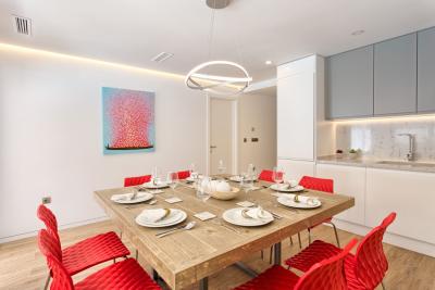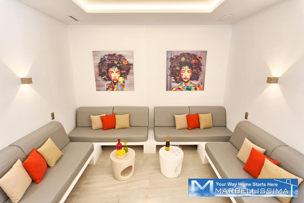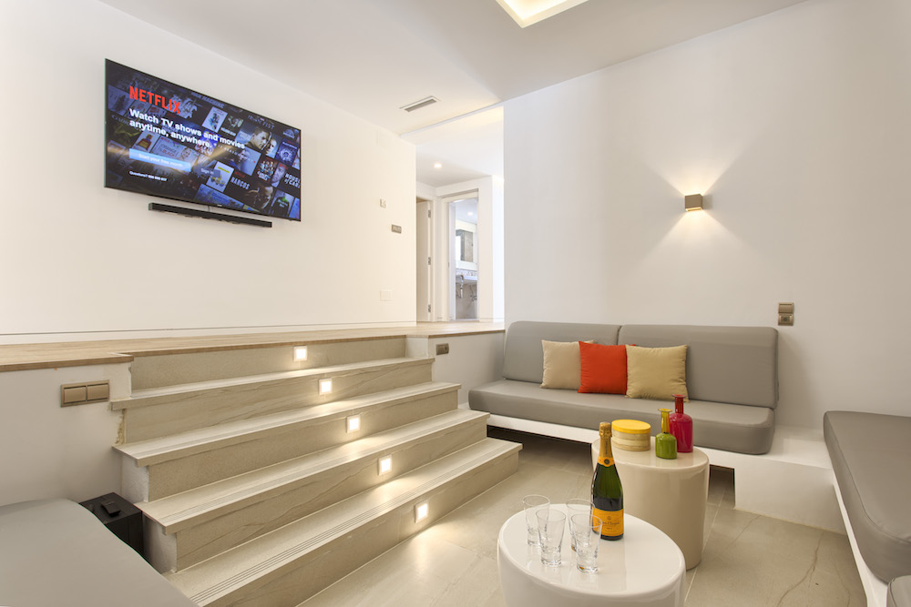 Approx. 500sqm plot, Approx. 140sqm built, 3 double bedrooms (bed can be set either double or singles), 1 bedroom for 4 people with 2 bunk beds, 4 en suite bathrooms, 1 guest bathroom with shower, Standard capacity in bedrooms: 10 guests, 4 sofa beds in lounge for up to 14 guests (short stays), 1 private garage for 1 large car/van, Independent AC in all bedrooms, lounge and kitchen, 100 Megabytes fiber optics Internet, 65' 4K TV with Internet, Netflix, Spotify, Youtube, BEIN, 300W Bluetooth sound system w/subwoofer, Keyless doors (code system), Safes Alarm, Covered terrace with hich table for 8 and lounge for 4, 7 meters pool with underwater chairs and disco lights, 1 toilet room by the pool, Gas BBQ, Illuminated terrace and garden, Rooftop solarium with shower, bar & fridge with amazing views of La Concha Mountain