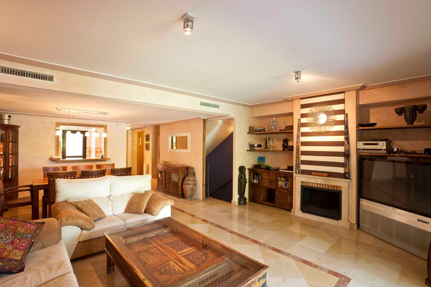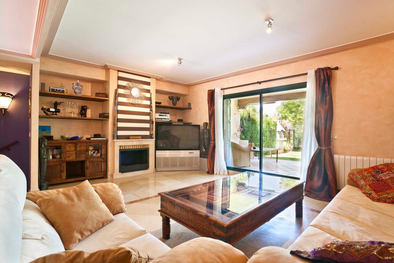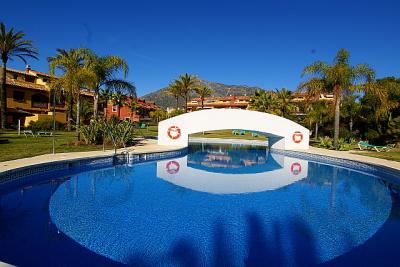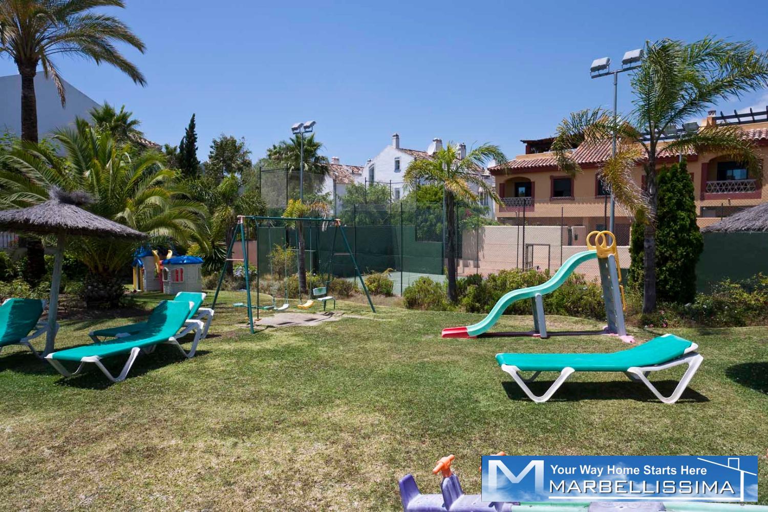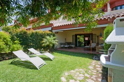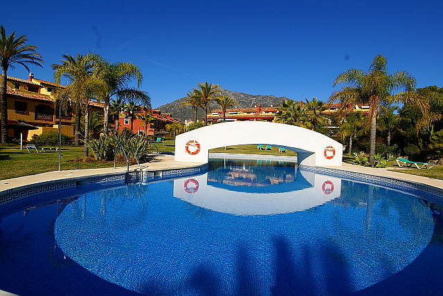 Semidetached house situated in the heart of the golden mile, 400 meters from the famous hotel Puente Romano with an excellent connection to all the local schools, 5 minutes driving from Marbella and Puerto Banus,300 sqm in total-3 bedrooms, 2 bathrooms + guest toilet, garden, solarium, porch, terraces, 2 swimming pools, gym, paddle court, security guard, 2 garage space. Community area with sports, swimming pools, walk through the garden. Independent air conditioning system on every floor- central gas heating system (radiators), sprinkle system in the garden that is maintained by a gardener provided by a community. The furniture is of a high quality, mattress-latex, queen size bed in the main bedroom, tv plasma 52” in the living room and the smaller plasma tv in the other rooms, modern buddha style decoration and much more. Terms and conditions on request. Work references, or demonstrable economic solvency.
