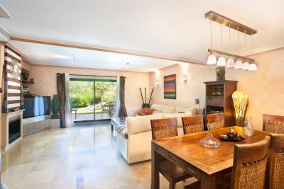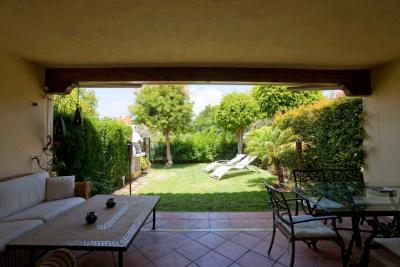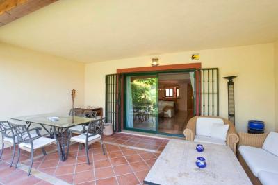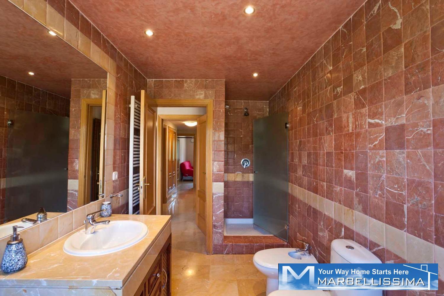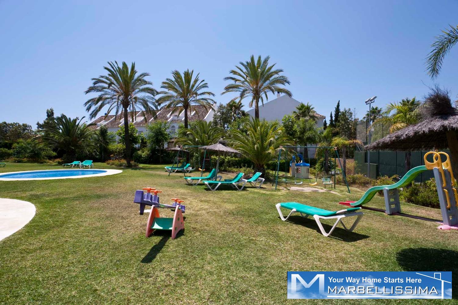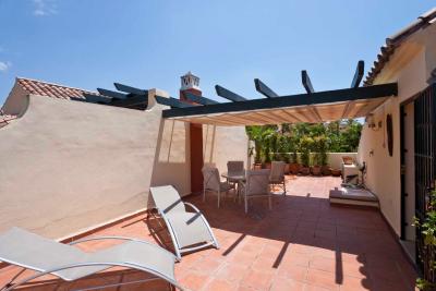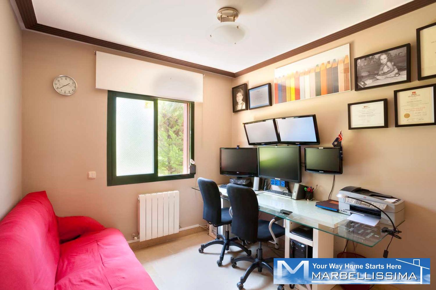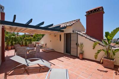 Semidetached house situated in the heart of the golden mile, 400 meters from the famous hotel Puente Romano with an excellent connection to all the local schools, 5 minutes driving from Marbella and Puerto Banus,300 sqm in total-3 bedrooms, 2 bathrooms + guest toilet, garden, solarium, porch, terraces, 2 swimming pools, gym, paddle court, security guard, 2 garage space. Community area with sports, swimming pools, walk through the garden. Independent air conditioning system on every floor- central gas heating system (radiators), sprinkle system in the garden that is maintained by a gardener provided by a community. The furniture is of a high quality, mattress-latex, queen size bed in the main bedroom, tv plasma 52” in the living room and the smaller plasma tv in the other rooms, modern buddha style decoration and much more. Terms and conditions on request. Work references, or demonstrable economic solvency.