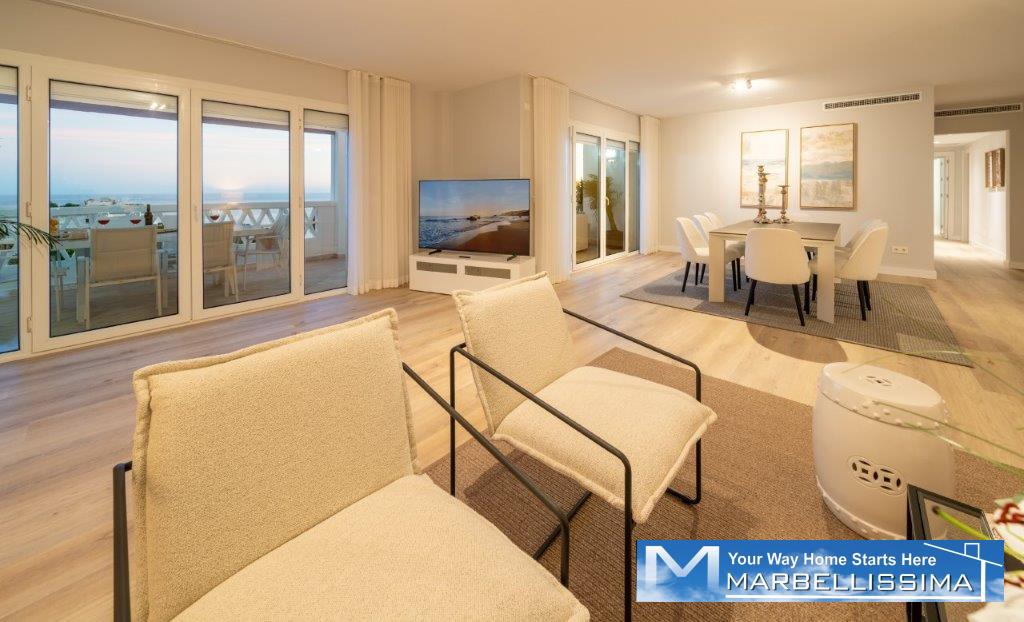 Beachfront complex in Puerto Banus. Playas del Duque is prestige residence, with perfect location to rejoice in a vibrant lifestyle, to delight the sun, the sea, haute cuisine, and a life full of great Mediterranean style and elegance enjoyments.