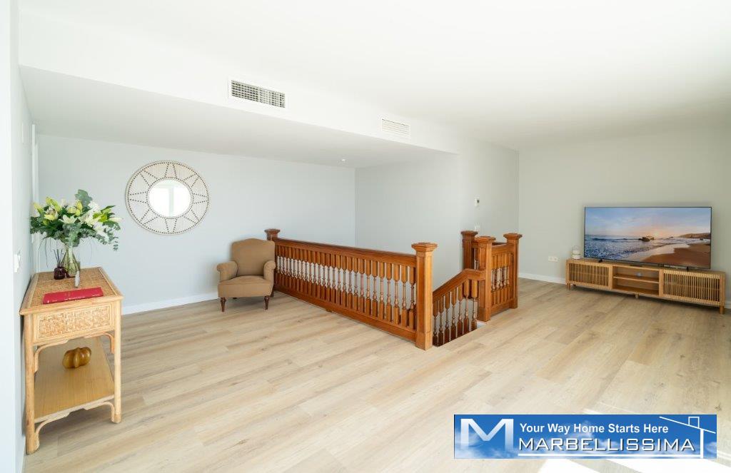 The wooden staircase leads to the upper floor, finding the elegant and comfortable master bedroom that occupies the first floor completely, and enjoys a beautiful living room, with sofas, many wardrobes and access to its own terrace with charming and expansive views. In addition, the property has a guest toilet. Includes a private underground parking space.