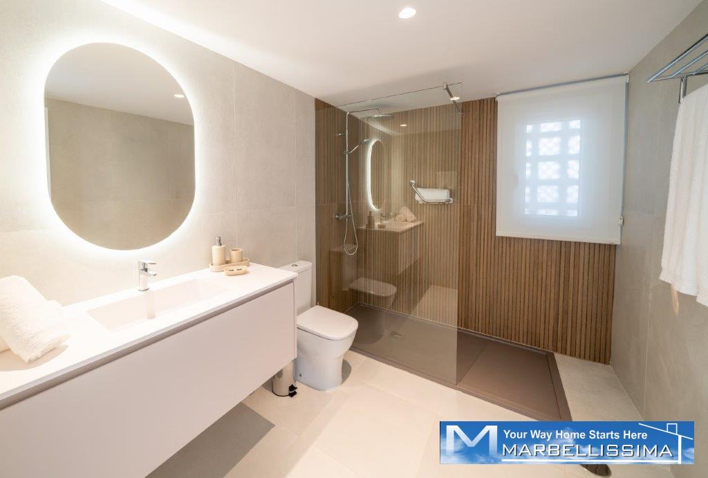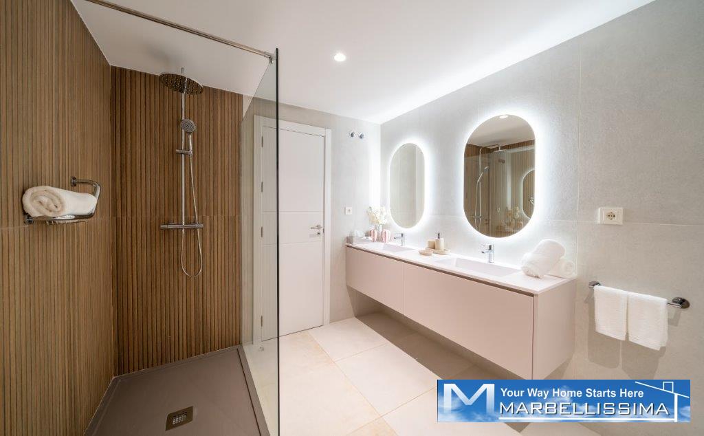 On the main floor are THREE high-end-bedrooms with own bathroom, with marble finishes and coated, beds, bedside tables, lamps, built-in closets.