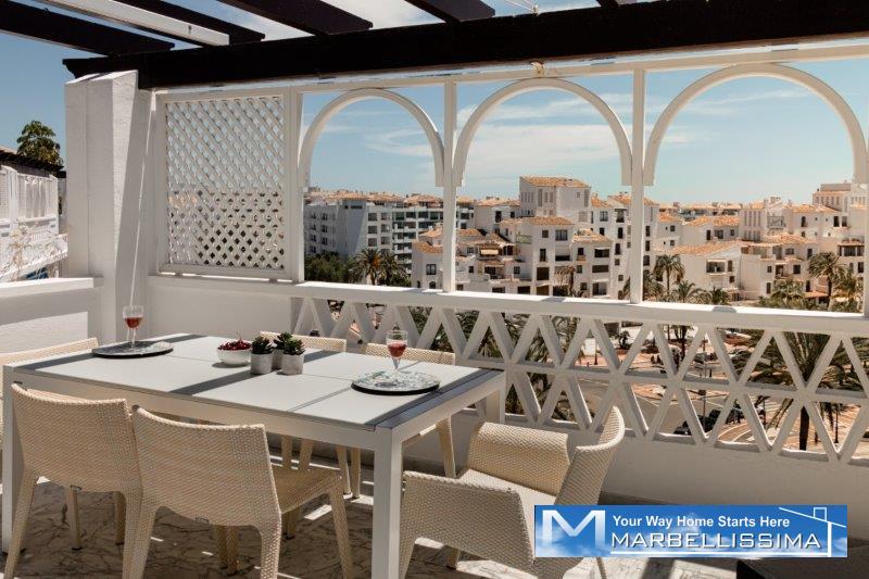 Large penthouse, with large terrace and wonderful views over Puerto Banus and to the distance some views to the sea. Penthouse for rent in Puerto Banús (Marbella), 4.500 €/month