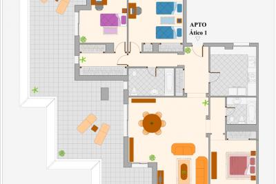 Beautiful furnished penthouse of 179 m2, distributed in an entrance hall, living room, independent fully...