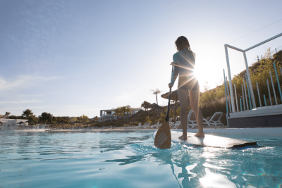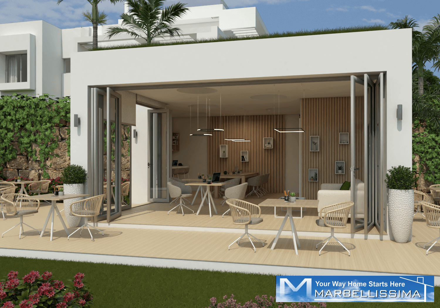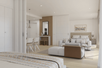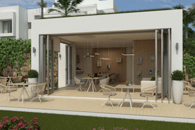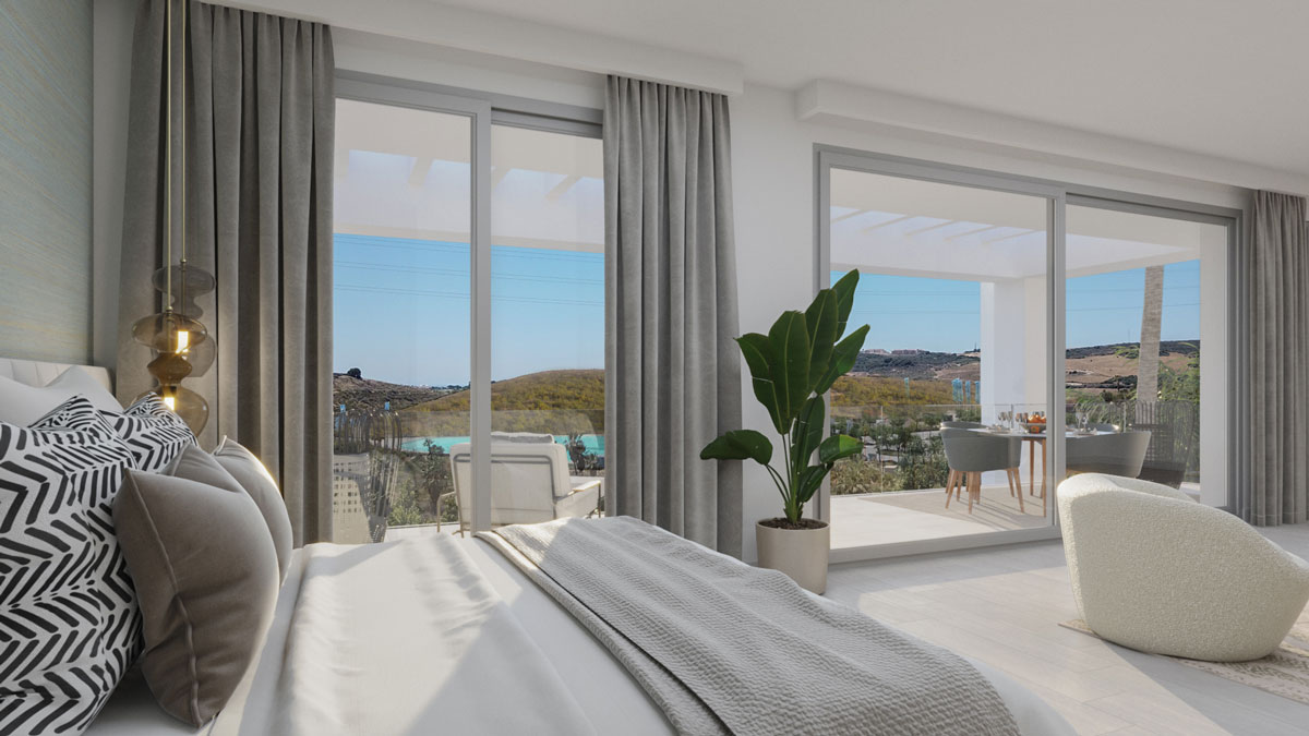 Crystal clear waters, beautiful landscapes, co-working area, gym, sports facilities in a new residential development with a contemporary Mediterranean style in the wonderful area of Casares, Costa del Sol with private artificial beach.