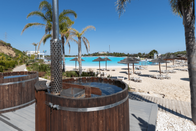 Phase IV has 59 apartments and penthouses of 2 and 3 bedrooms, with spectacular terraces, all with good quality finishes, south facing homes overlooking the sea or the lagoon, storage room, underground garage, elevator, air conditioning, central heating, hot water by solar panels, satellite TV, marble bathrooms. Large communal area with artificial beaches with fine sand, solarium areas, beach sports area, communal services, changing rooms and showers, exotic gardens, tropical plants and outdoor swimming pools. new facilities and upgrades will come soon! Beach club, jacuzzi, sauna, sports area, playground, floating cinema, and more. | Outdoor terraces from: 32, 48 sqm | Outdoor terraces up to: 276, 04 sqm | Total built from: 137, 23 sqm | Total built up to: 434, 12 sqm | Height level from: ground floor | Height level up to: second floor | Private garages 1 or 2 spaces per property | Buggy garages 1 space per | property storage room one per | property Quality specifications Foundation and structure: footings or slab and walls in reinforced concrete basement, flat slabs / two-way reinforced concrete roof with reinforced slab areas, with thermal sheet. Roof: accessible flat roof or sloping terrace made of aerated concrete, protective mortar layer and ceramic tiled floor. Exterior walls: solid brick to Cladded and rendered with cement mortar on the outside. Interior face with thermal /acoustic insulation of polyurethane sprayed in situ, insulation chamber and interior hollow brick wall. Partitions: between the apartments, the double brick wall of sound-absorbent perforated brick and rock wool. Dividing walls inside the double hollow brick apartment. Interior renders: Plastered on walls and ceilings, ceiling suspended in plaster in damp rooms and where the equipment is housed. Accessible suspended ceiling where the air conditioning equipment is located. Perimeter recess in the living room. Interior floors: ceramic tiles of Porcelanosa or similar, in different sizes depending on the room. Exterior floors: non-slip ceramic tiles from Porcelanosa or similar on terraces of different sizes depending on the area. In common areas: non-slip ceramic stoneware tiles of Porcelanosa or of similar measure 60 x 60 cm. Coatings: ceramic tiles ' stoneware ' of Porcelanosa or similar in kitchens, bathrooms and toilets and smooth plastic paint, according to the project. Interior carpentry: front security door with steel core, security locks and peephole. Interior doors lacquered in matte white, with door handle or sliding doors, depending on the project. Lined wardrobes, with drawers, cupboards, hanging railings and upper cabinets, according to the project. Exterior carpentry: aluminium with hinges or sliding windows and door frames by Technal or similar, in gray with double glazed climalit and insulation chamber or similar. Glass railing in front of the terrace. Faucets and faucets: high quality toilet seats, premium faucets, countertop and sink and mirror. Bathroom screen. This document has no contractual value and is subject to change. Additional features: • Handsless video electronic intercom system • Domestic hot water produced by solar panels, backed by an electric heater or a high-efficiency system. • Air conditioning with heat pump and ducts to all rooms, by Daikin or similar. • White and colored outdoor LED lighting. • Mechanical ventilation system in kitchens, bathrooms and toilets in accordance with the technical code of the building. • Electrical wiring with ultra-thin mechanisms of high quality, with white finish and chrome, by NIESSEN or similar. • TV, telephone and Internet plugs. • Two USB charging points for electronic devices. • Fully equipped kitchens with top quality appliances, including washing machine, dishwasher, fridge, hob, electric oven, drainage board, extractor fan and water heater. • Metal garage door with photoelectric cells and remote controls. • Pre-installation of the charger for electric vehicles in garage. • Swimming pools, landscaping with subtropical and indigenous plants, irrigation system and LED lighting around the complex.