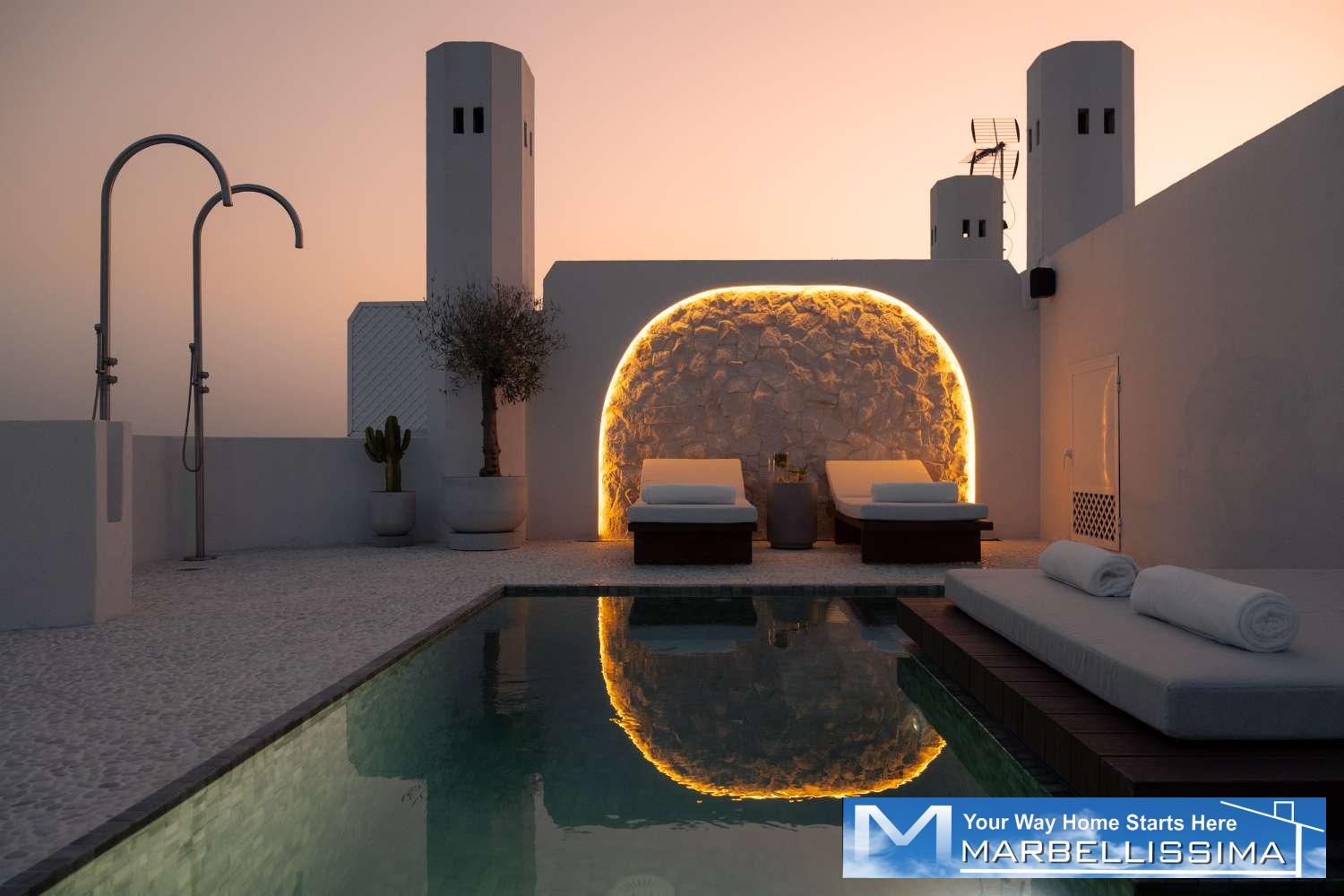 A private pool with sea views on Marbella’s exclusive Golden Mile. This fully renovated penthouse is lodged in a prestigious gated community, featuring 3 en-suite bedrooms.