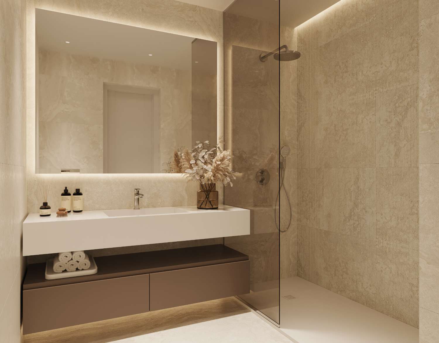 Bathrooms: Top-quality materials and finishes modern bathroom with electric underfloor heating, custom-made suspended furniture with drawers’ wardrobes, to create and combines functionality, cosiness and style.