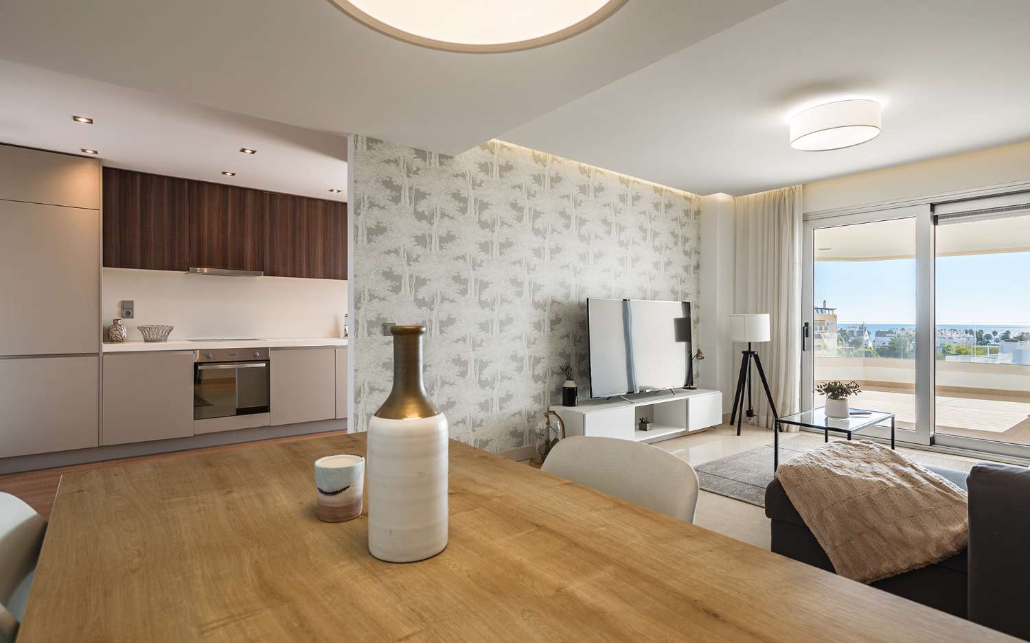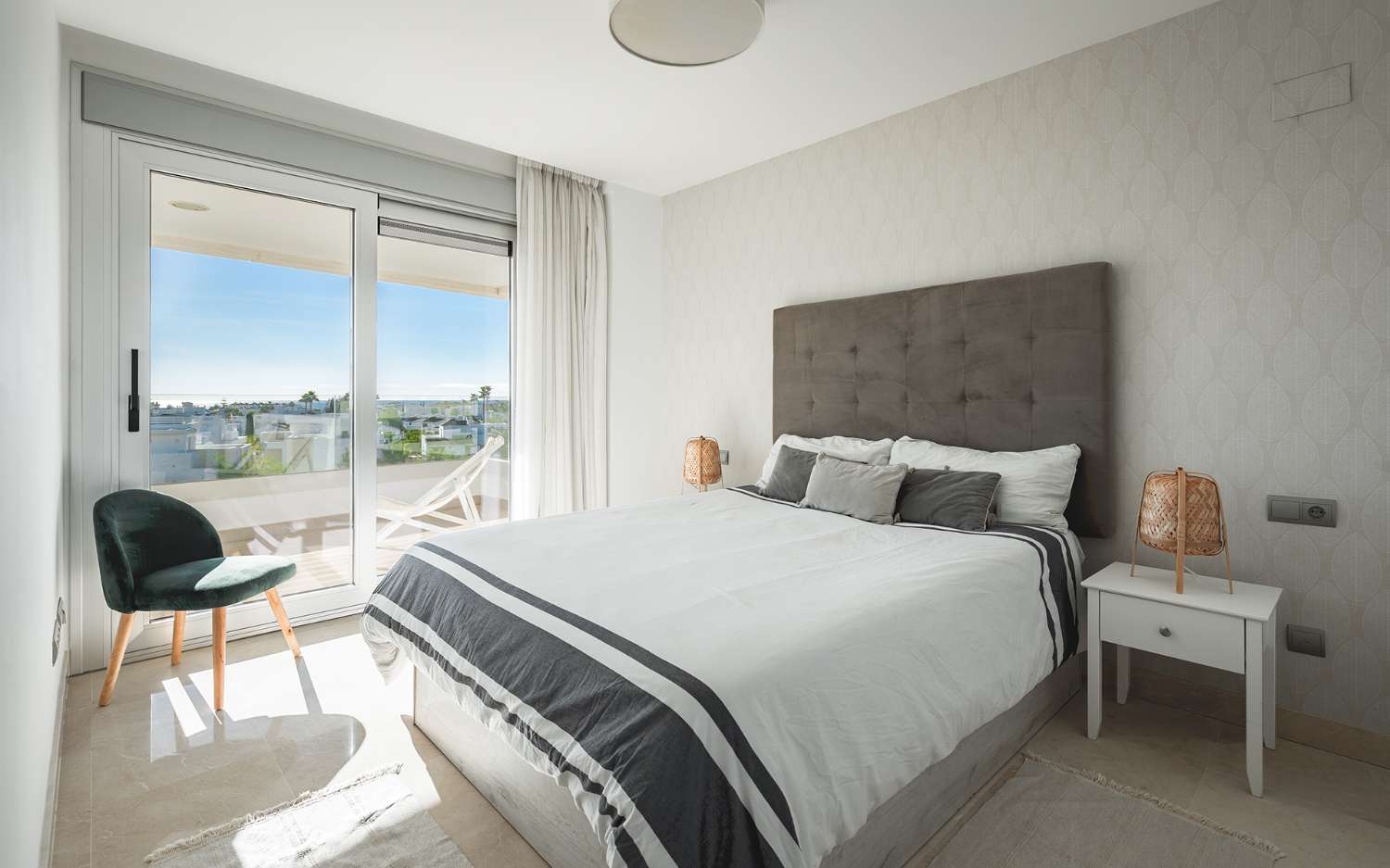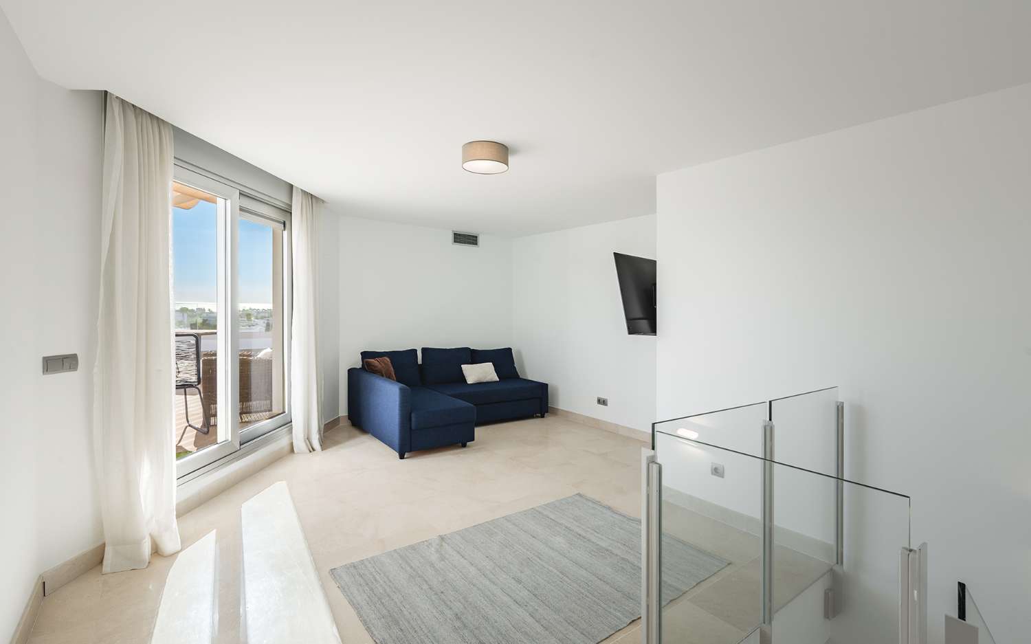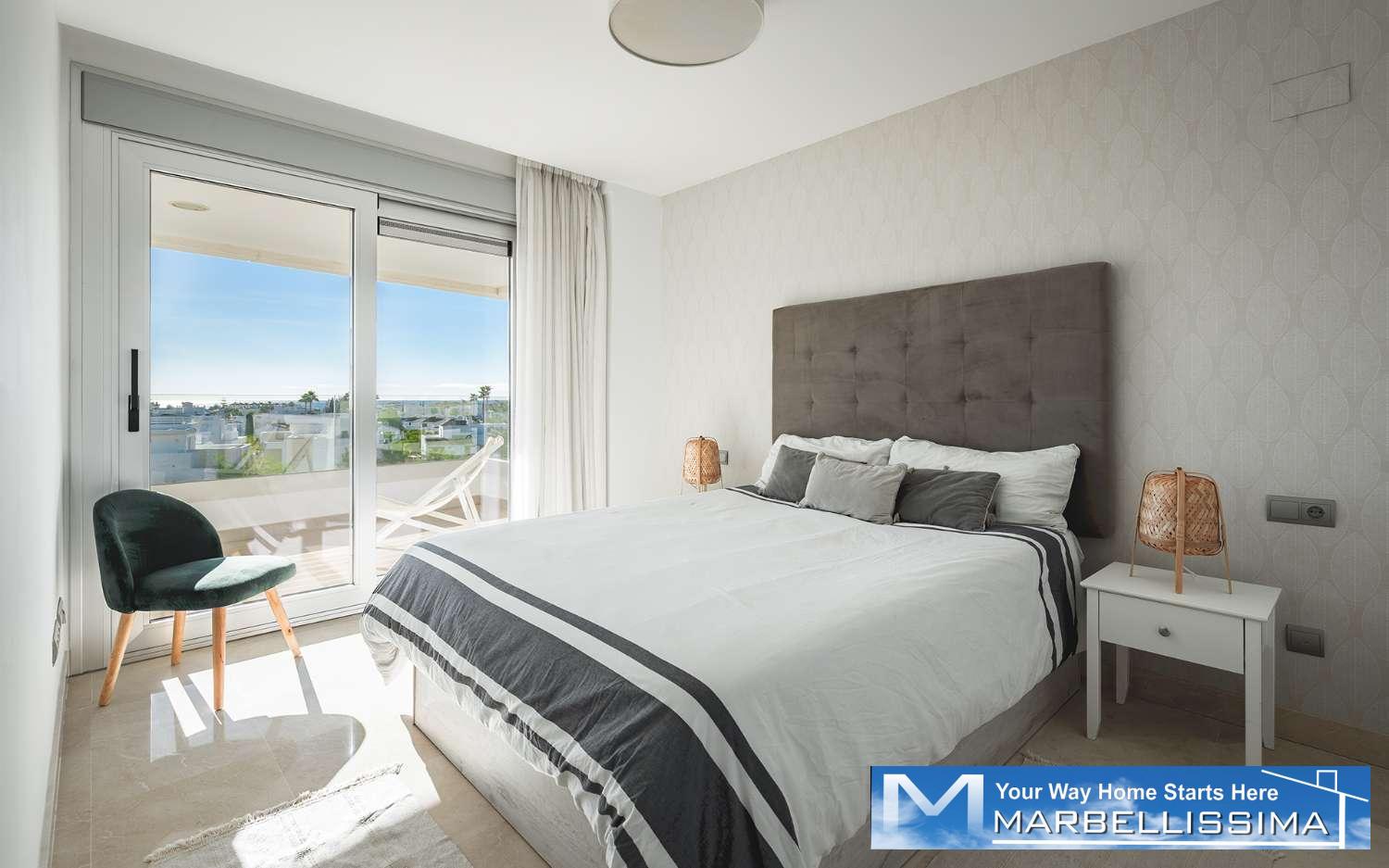 This remarkable South-facing corner duplex penthouse, is in Acqua, a luxurious residence, built in 2017, offering a leisure zones with interior green area, with gardens, outdoor swimming pool, communal walkway, communal basement with access way to private garages, lifts, and security, situated in San Pedro Playa, just 700 meters from the beach and Ideally located near the new boulevard, with diverse leisure and dining options.