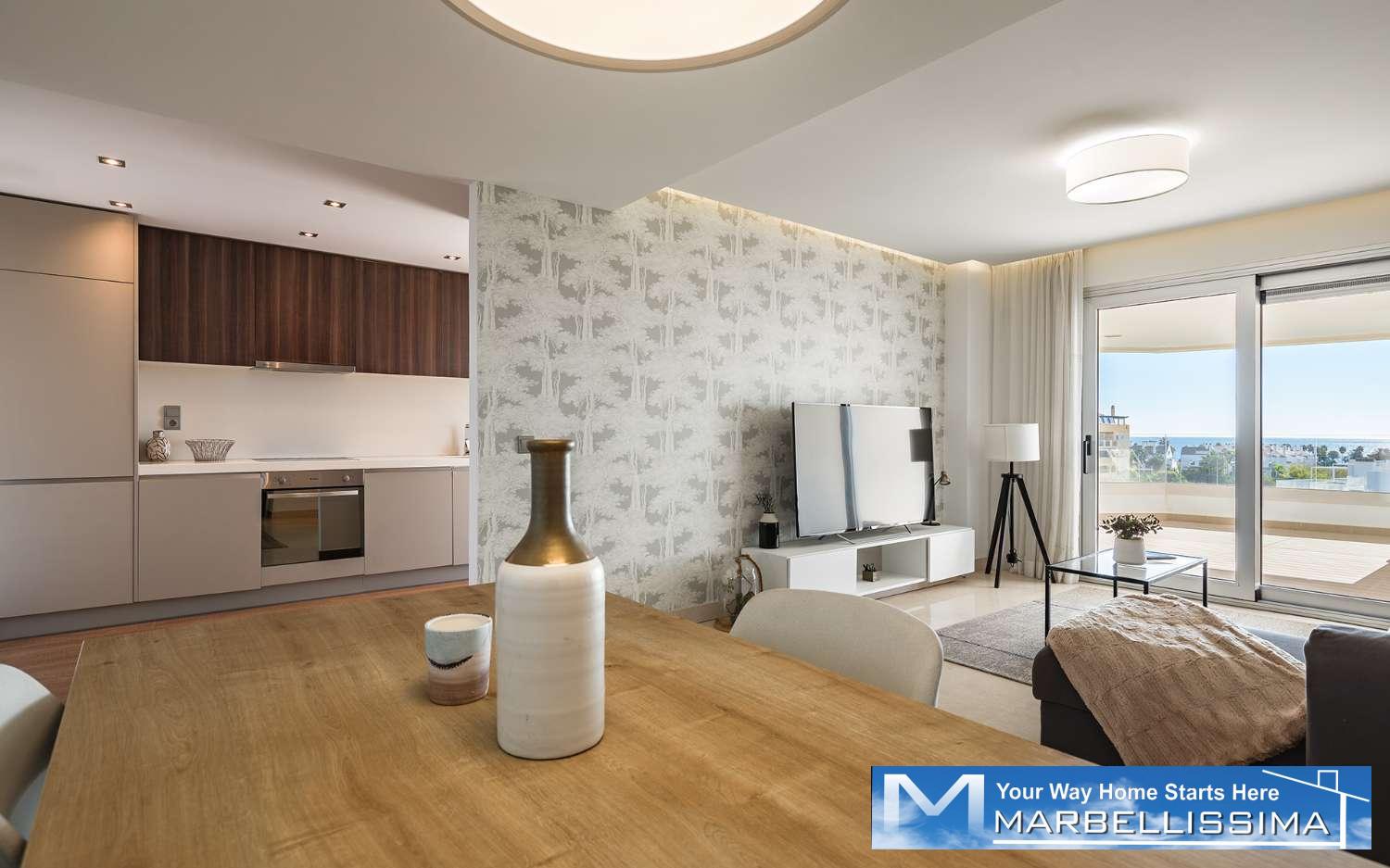 The apartment in perfect condition includes an upgraded in layout and quality, and enjoy a large roof terrace with wonderful views, ideal for sunbathing or entertaining, an open-plan living room, with joining modern fully fitted kitchen, 3 bedrooms, 2 bathrooms (one en-suite), two parking spaces and two storage rooms; complete this home, unfolding wonderful vibrant experiences living under the Marbella sun.