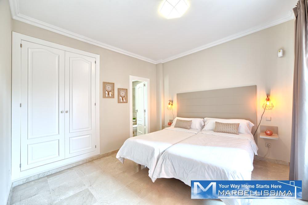 - A second double bedroom with 2 single beds, 40" TV, en-suite bathroom and direct access to open terrace with partial sea views.
