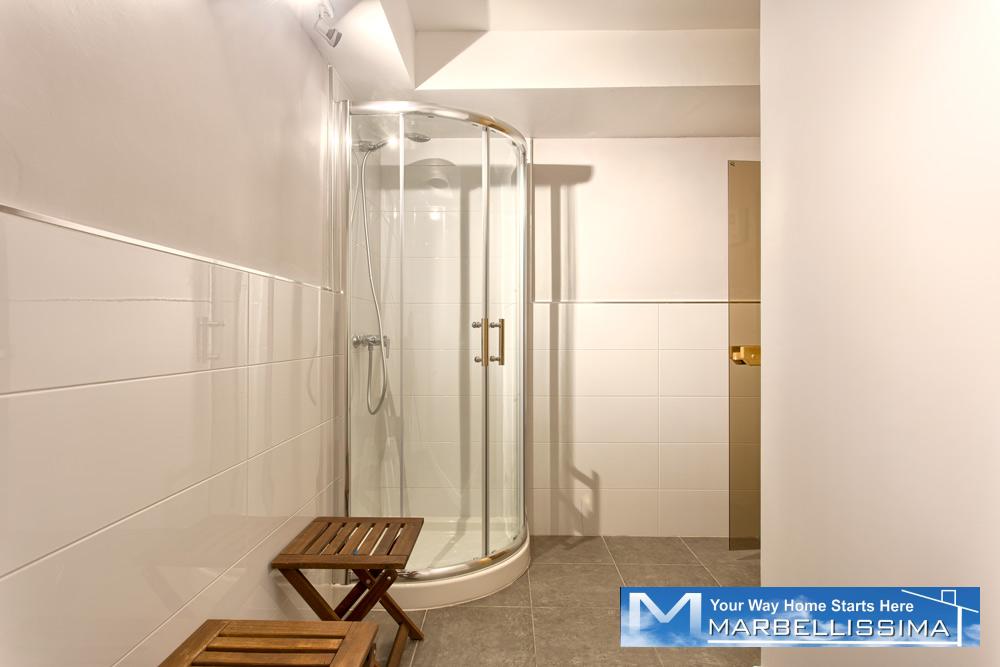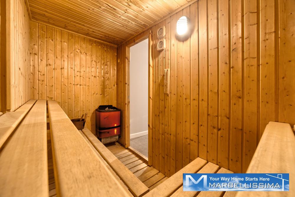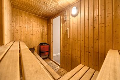 - A second double bedroom with natural light, individual AC, Heating, 2 single beds and an ensuite bathroom with shower. - A 6-8 people sauna and shower room