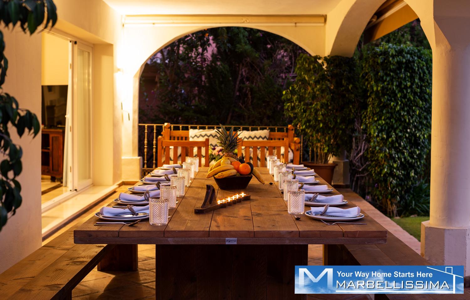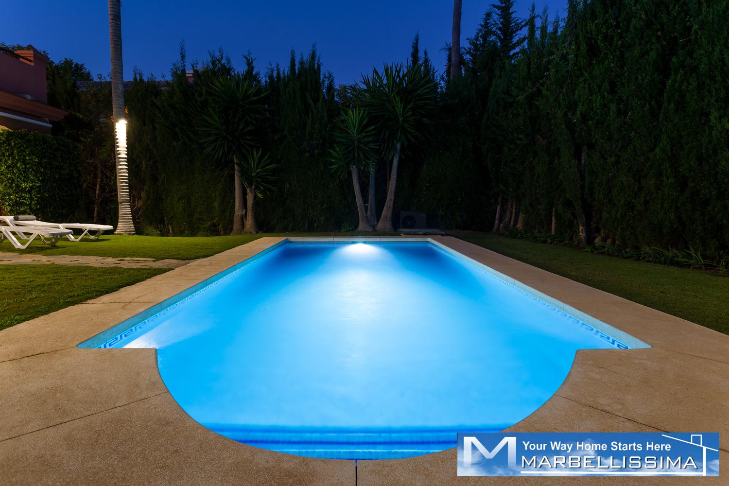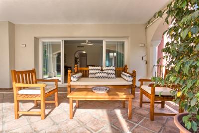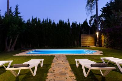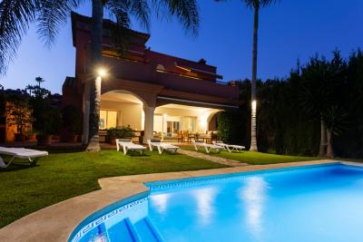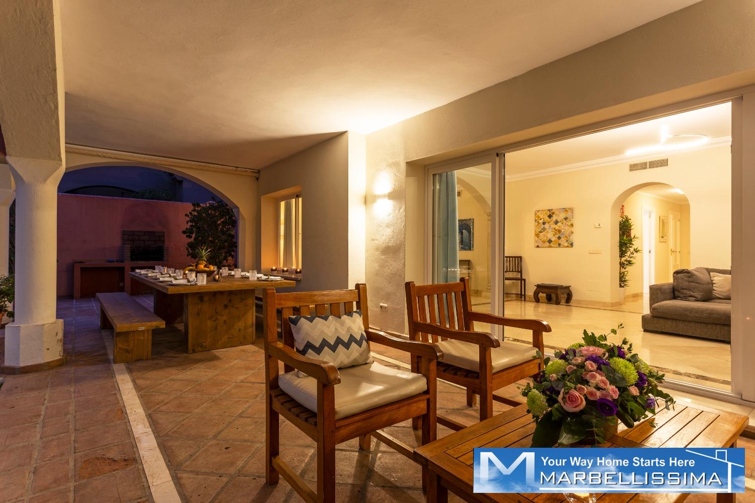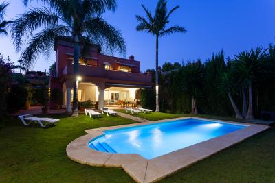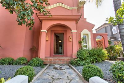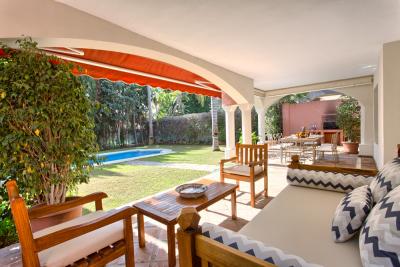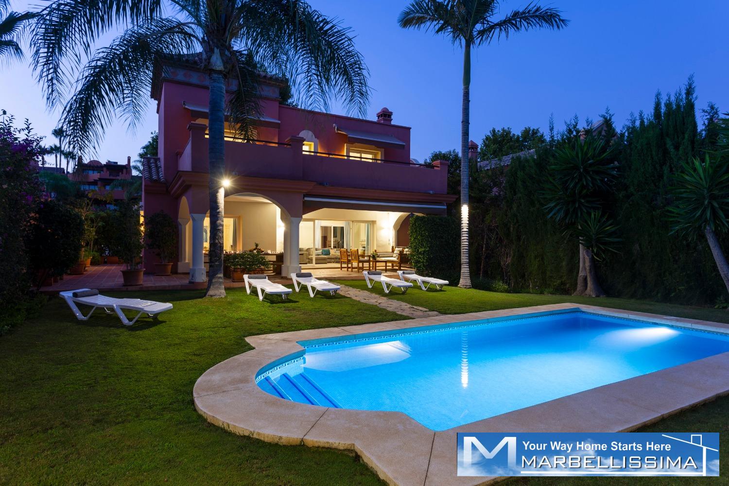 Beautiful villa just 600 meters walking distance to the famous Puerto Banus and the beach. Private garden with heated and well maintained garden and pool, offers a large covered terrace with chill-out area and dining area, living room and outdoor barbecue. It comprises of a main floor, first floor and basement. Surveillance services in a beautiful Gated complex of great prestige and commercial area with cafeteria, pharmacy, supermarket 24 hours, excellent location.
