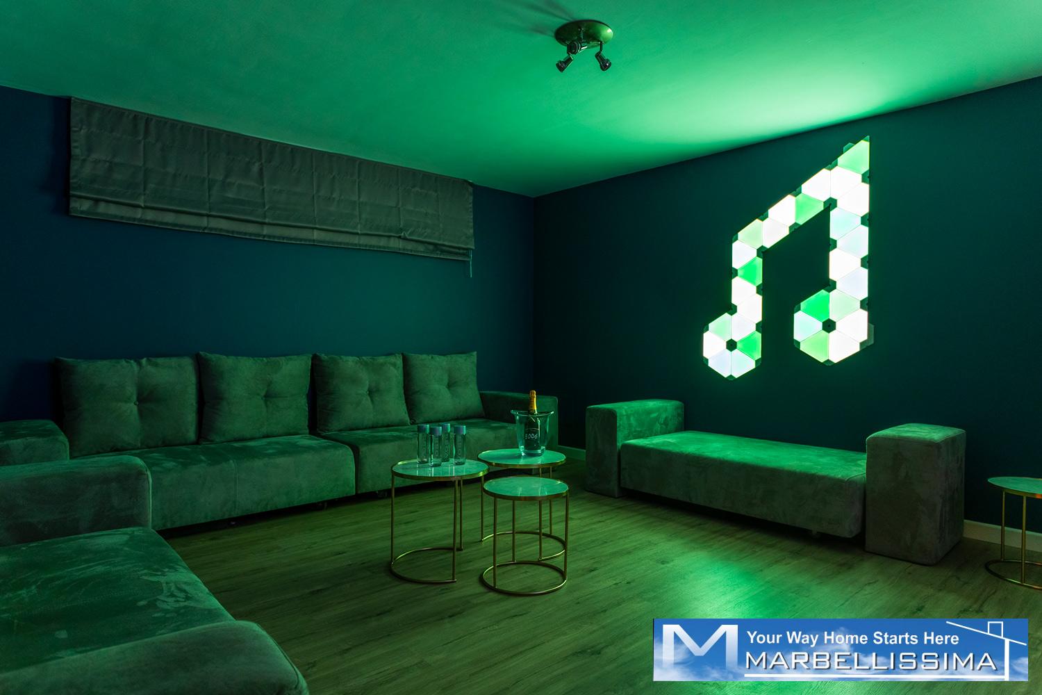 - A second living with a 75" Smart TV with Home Cinema system, Music synched lights, Netflix, Spotify, Youtube...