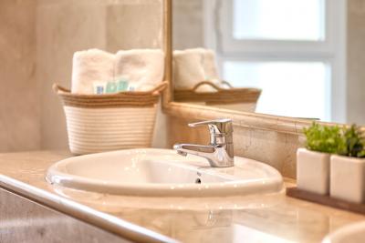 - Liquid hand soap bottles available in every bathroom