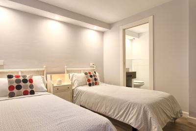 - 1 double bedroom with natural light, individual AC, Heating, 2 single beds and an ensuite bathroom with shower.