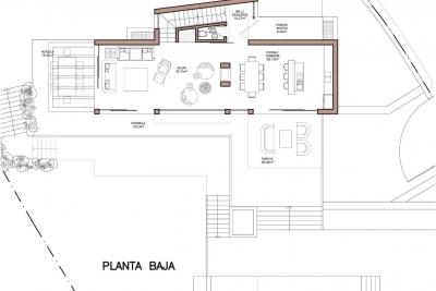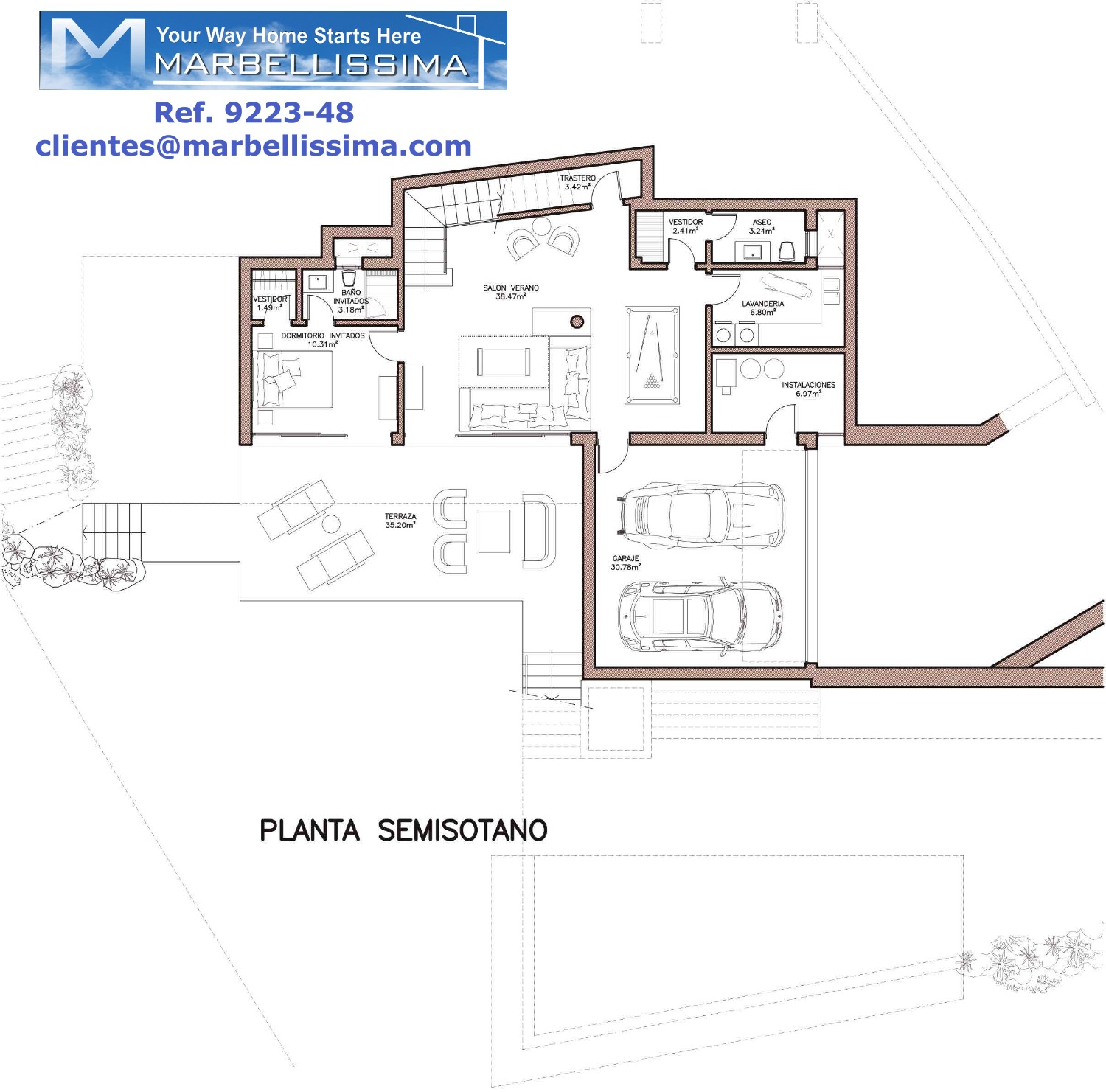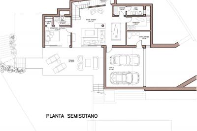 - Semi basement floor there is a living room-summer of 38.47 m2, a bedroom en suite with dressing room, toilet, dressing room, laundry area, storage room, facilities room, access to covered garage with capacity for two cars, access to an open terrace of 35.20 m2.