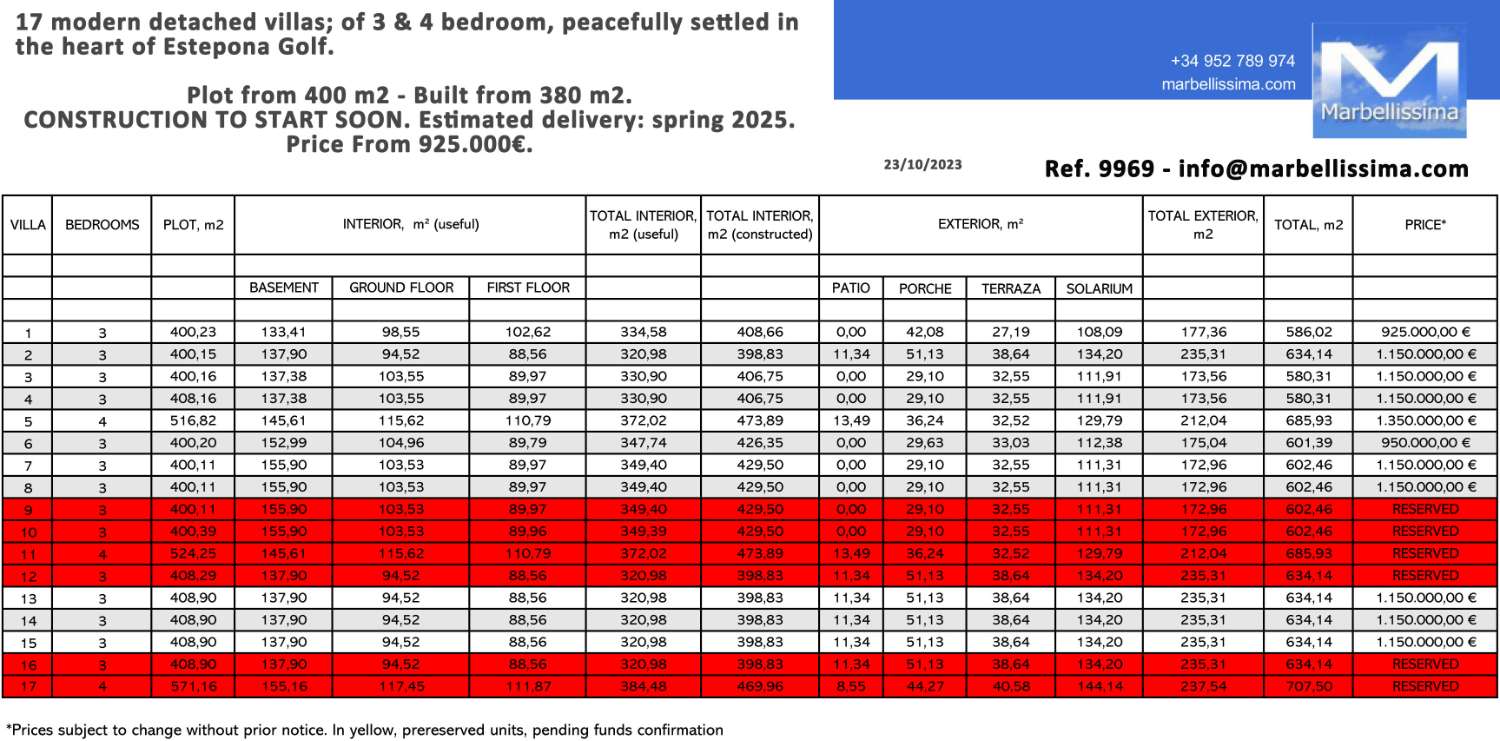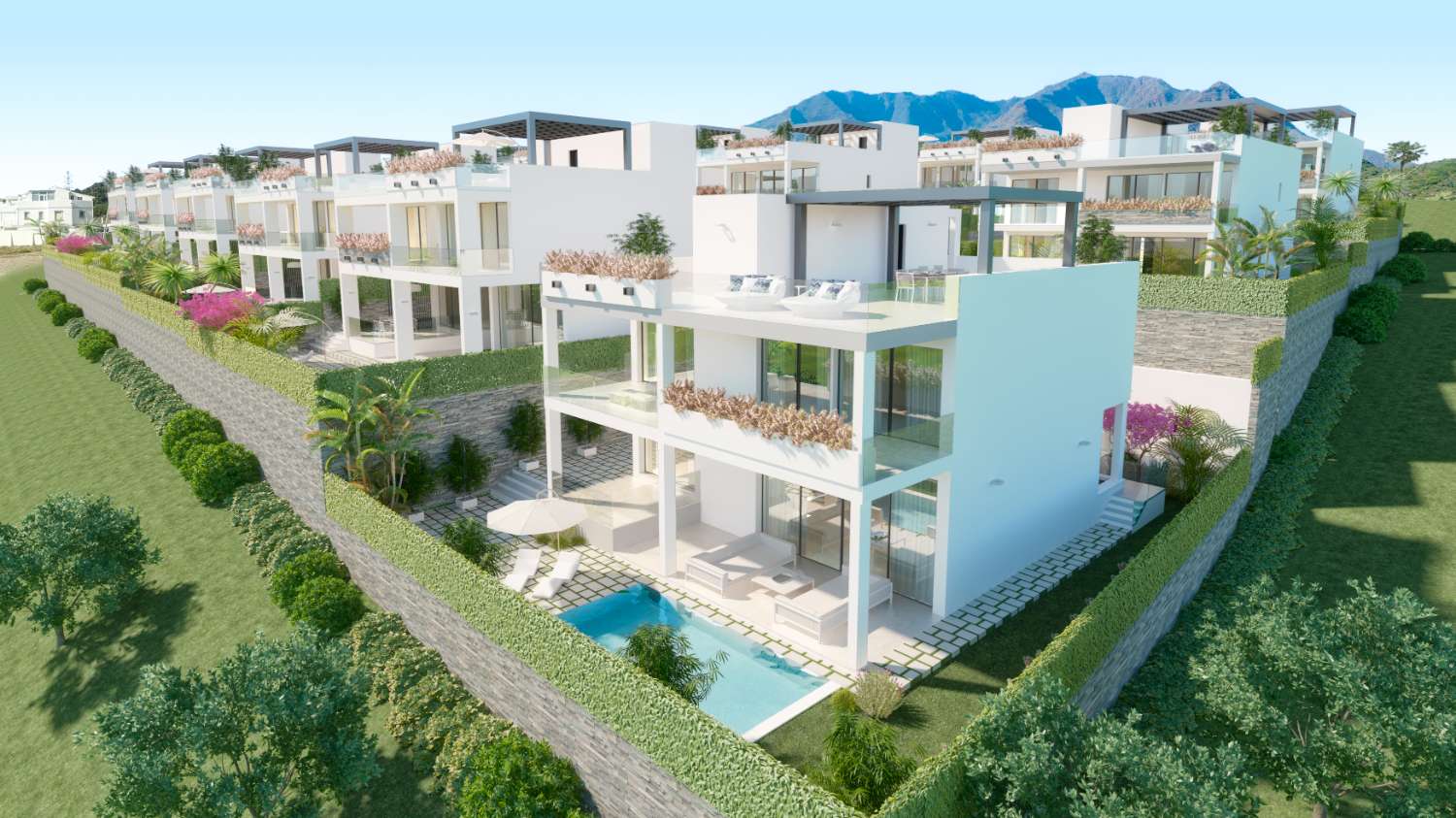 17 modern detached villas; of 3 & 4 bedroom, peacefully settled in the heart of Estepona Golf. Plot from 400 m2 - Built from 380 m2.