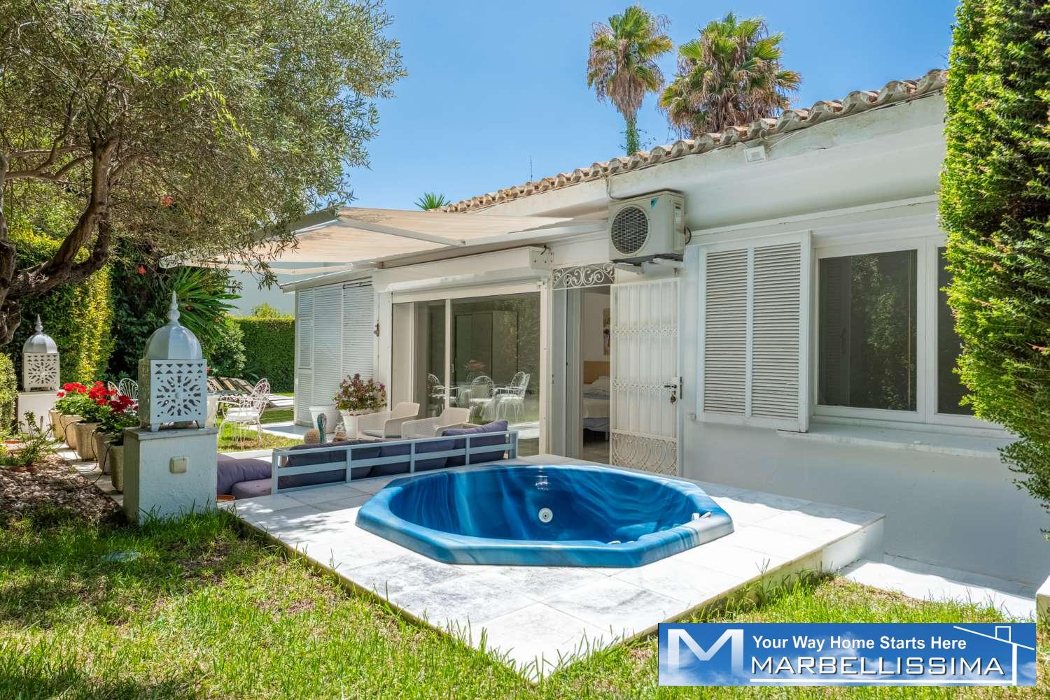 Located in the exclusive and secure beachside enclave of Los Monteros in Marbella East, this charming semi-detached villa offers the rare chance to live just 150 metres from the beach, within walking distance of the iconic La Cabane Beach Club. Set in a tranquil, gated community known for its prestige and privacy, this home is a true gem for those seeking a refined coastal lifestyle.