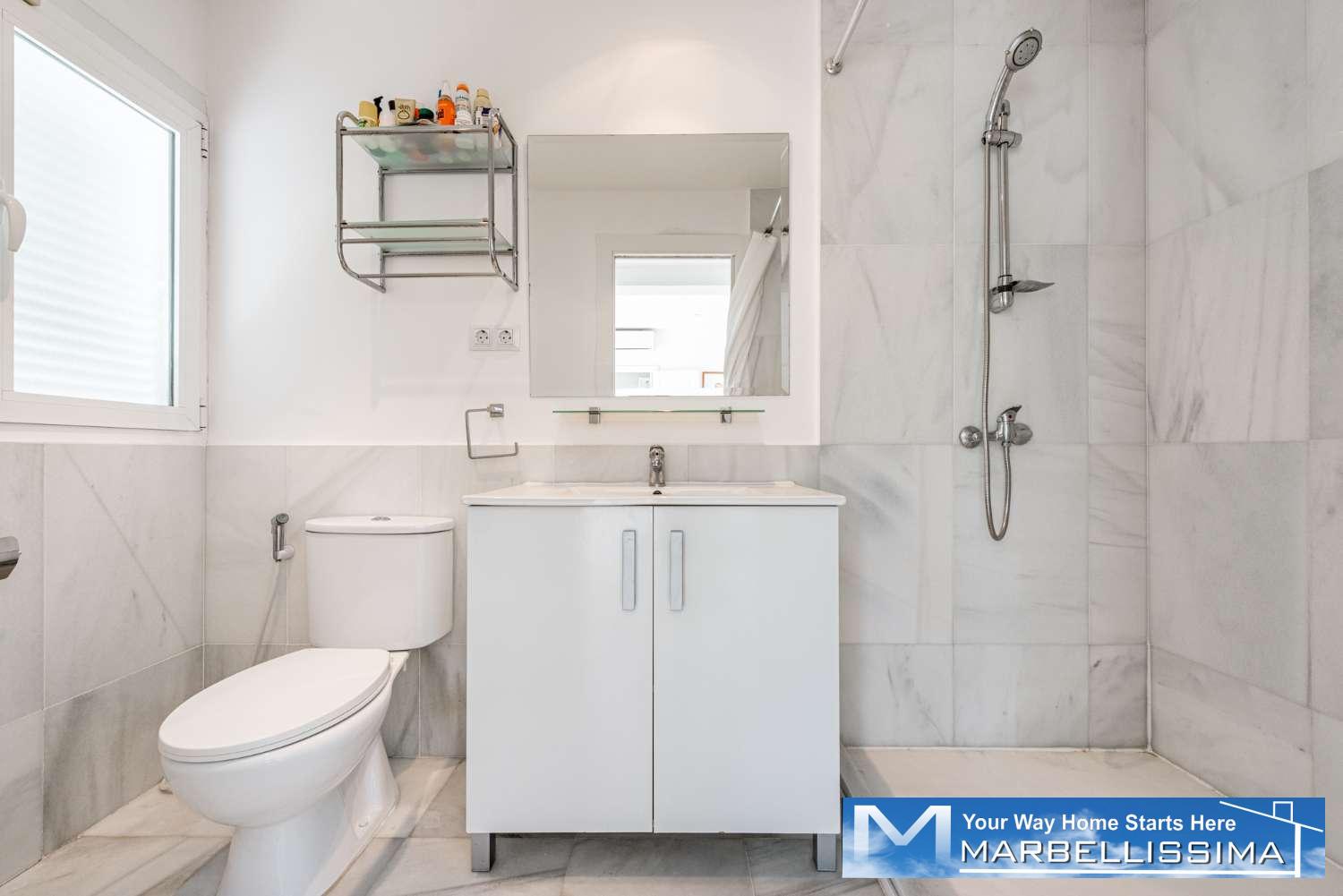 To the rear of the property, you’ll find a private swimming pool surrounded by a low maintenance garden area – ideal for sunbathing, entertaining, or simply enjoying the outdoor lifestyle Marbella is known for.