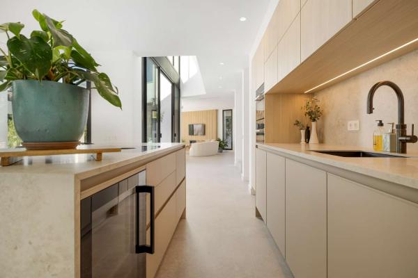 A sleek, modern open-plan kitchen comes fully equipped with state-of-the-art appliances making it the heart of the home for those who love to cook or entertain. The adjoining living space are designed to maximize natural light and flow seamlessly into the outdoor areas.