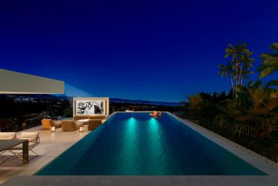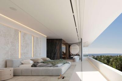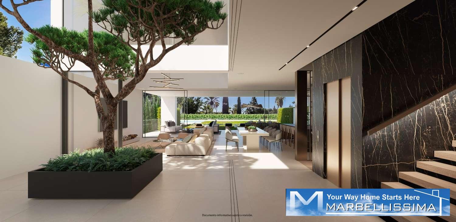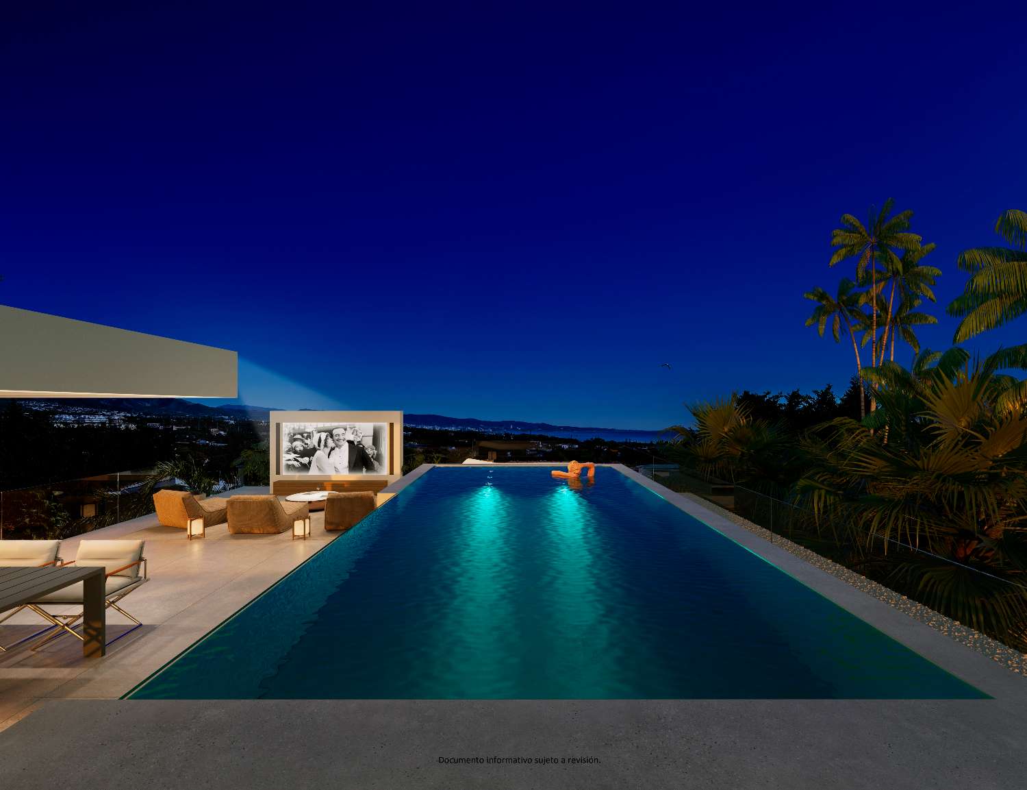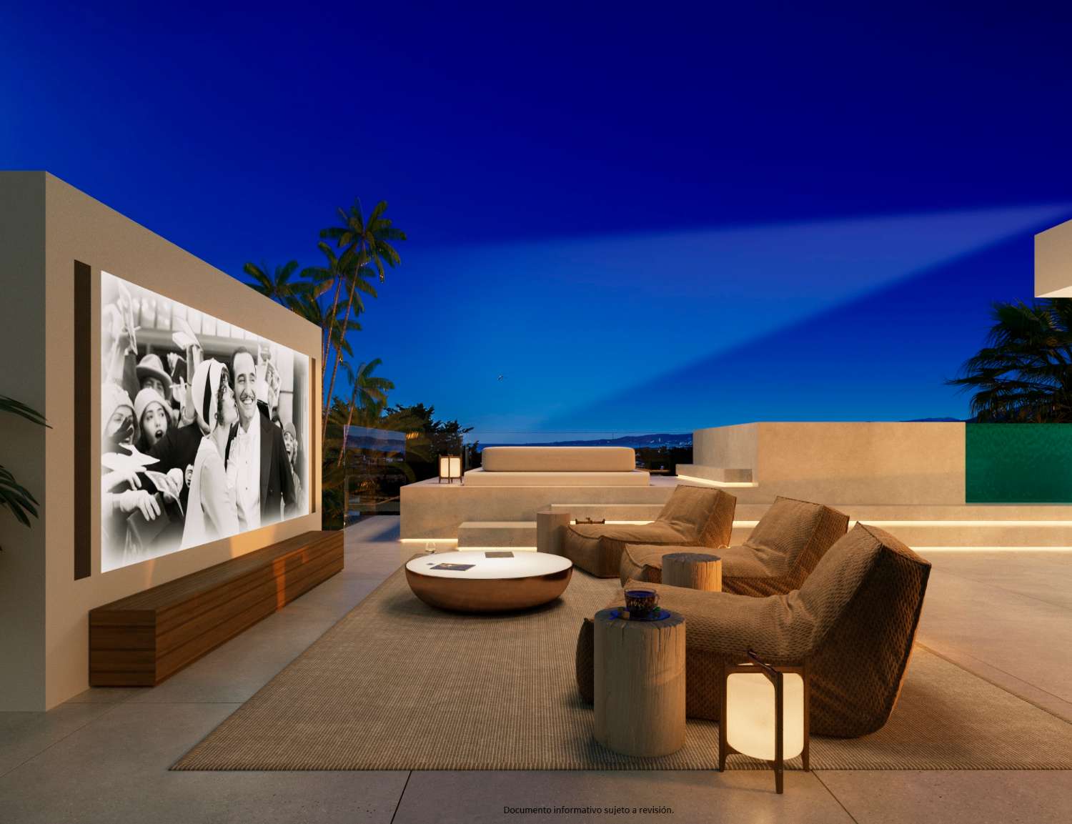 Villa 4 offers 4 floors, private elevator, open roof terrace with cinema and private pool, basement, private garden, Central Interior Patio with the unique experience of enjoying the view of the sky from the comfort of your sofa. A set of unique features carefully selected with exceptional qualities.