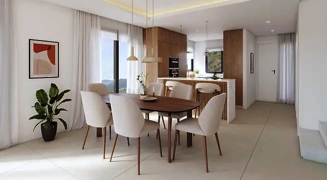 FOUR-bedroom design villas with distinctive features committed to using top brand materials, large windows so that natural light flows through the open plan dining, living room and kitchen, Sliding glass doors, underfloor heating, hot and cold air conditioning with a centralized aerothermal sandstem, fully and fitted kitchen with top quality appliances and wide range of design options such as recessed ceiling-mounted extractor hood to personalized lifestyle, spacious terraces and private parking.