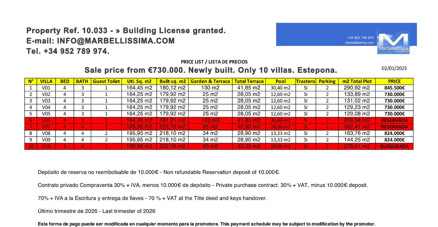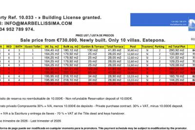 » A TOTAL OF 6 VILLAS with 4 bedrooms, with 3 bathrooms, 1 toilet, 2 garages and storage room. Prices from €730,000.