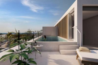 » The corner villas have swimming pools in their private gardens, and the other units have the pools on their solarium roof terraces with rewarding sea views.