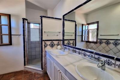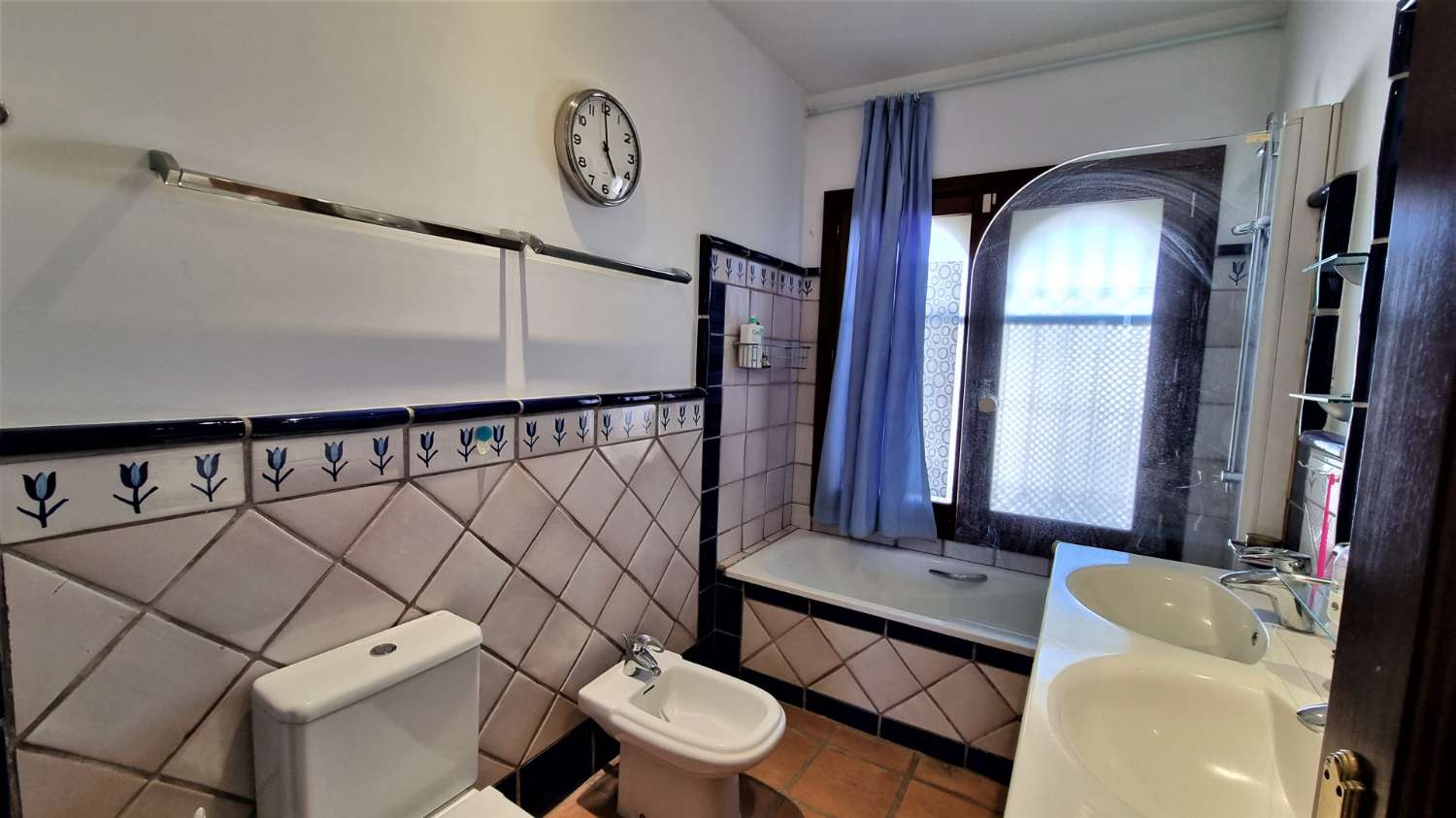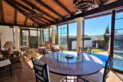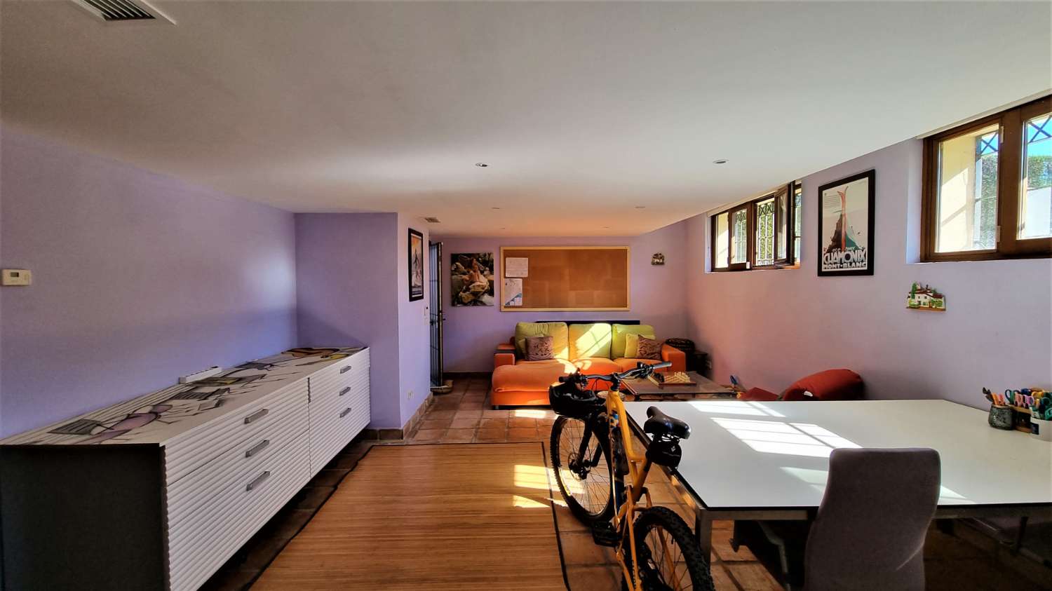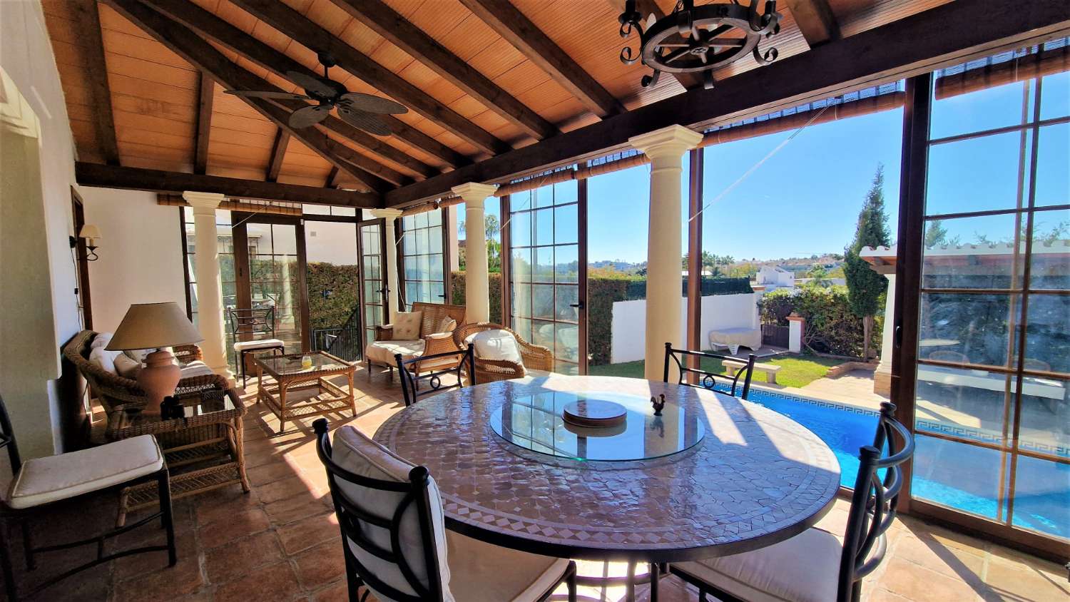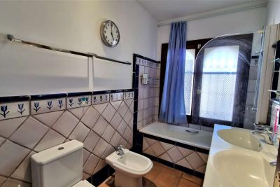 Charming house excellently located, close to the beach and all type of services. The house is built on 2 floors with a large basement. The main floor has a large living room, a separate dining room (originally a bedroom that could be re-installed), a kitchen and a guest bathroom. Communicating with the living room there is a large south-west facing conservatory with views to the pool, garden and mountains. From the kitchen there is access to an outdoor kitchen with barbecue. On the upper floor there are two bedrooms each with a balcony and sharing a bathroom. The main bedroom has a dressing room and in-suite bathroom. The basement offers 2 bedrooms, 1 bathroom, laundry room, storage room and also a large games room. There is direct access from the outside so it can be a totally independent living area.