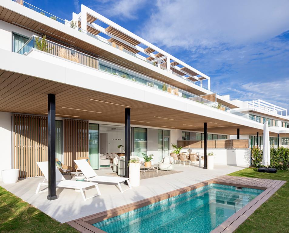 Viviendas de obra nueva en Marbella, con 104 unidades de 3 y 4 dormitorios, que ofrecen apartamentos y áticos en planta baja, inteligentemente diseñados para optimizar el estilo de vida, con amplios ventanales, salón y cocina integrados en un espacio diáfano para crear un hermoso horizonte en su propia casa, y diseñados para incorporar la naturaleza y el mar en sus mejores momentos. Los residentes también se beneficiarán de una magnífica selección personalizada de espacios comunitarios, con zona de gimnasio, con piscina cubierta, sauna y gimnasio para el uso y disfrute de los residentes, además, piscina exterior, zonas para tomar el sol, golf en primera línea, WIFI en zonas comunes, portería de seguridad/control en zonas comunes... y un sinfín de lujos y entretenimientos en su interior y alrededores.