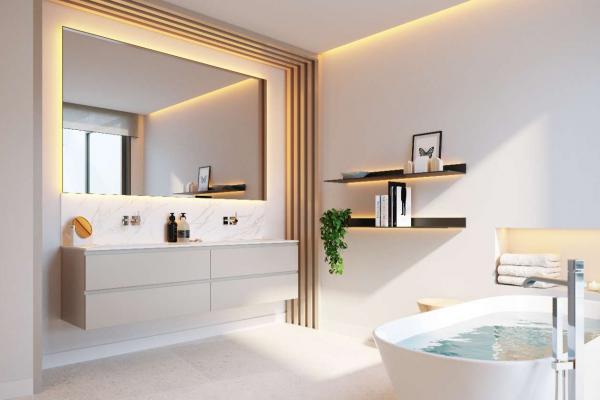 Una espectacular declaración arquitectónica y un sello distintivo de este nuevo desarrollo. Las vistas abiertas de 300º en el horizonte desde el amanecer hasta el atardecer, junto con la luz ilimitada, configuran el escenario para este magnífico edificio. Un atrio circular en el centro del edificio garantiza que la luz natural llegue a todas las partes del apartamento.