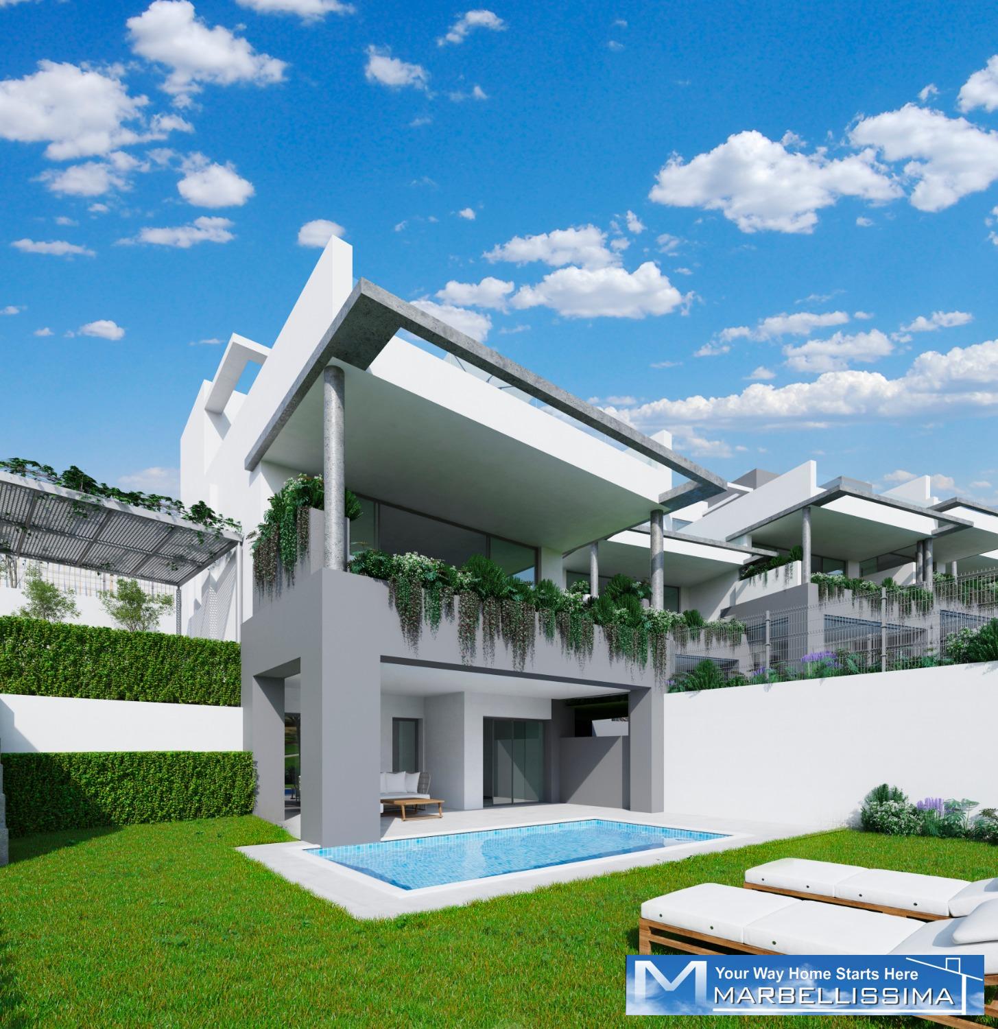 Vistas al mar, 3 dormitorios independientes y adosados con piscina privada. Precio de venta desde 689.000 euros. Cabopino. Casa en venta en Cabopino-Artola (Marbella), 689.000 €