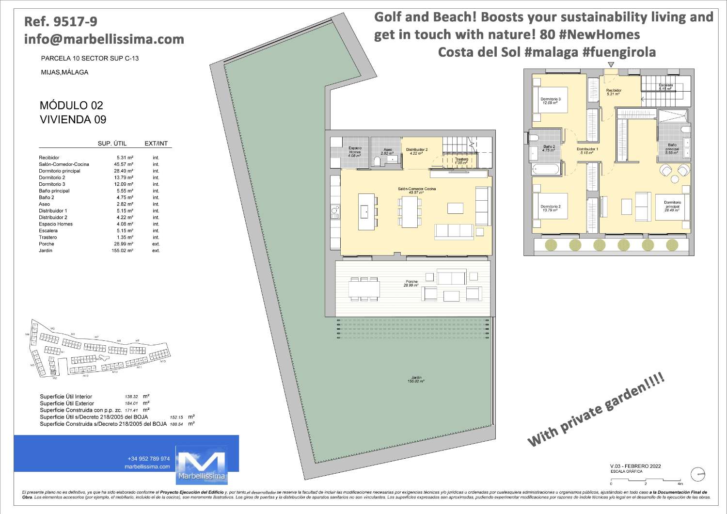 » 3 Dormitorios: Desde 22,02 m2 – 154,99 m2.