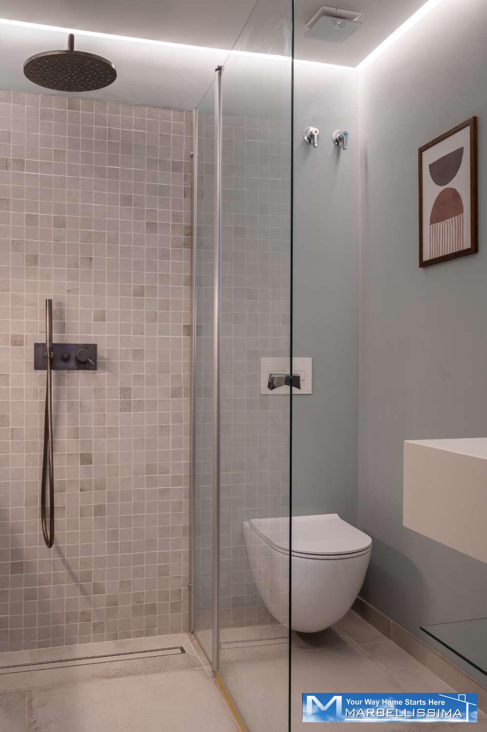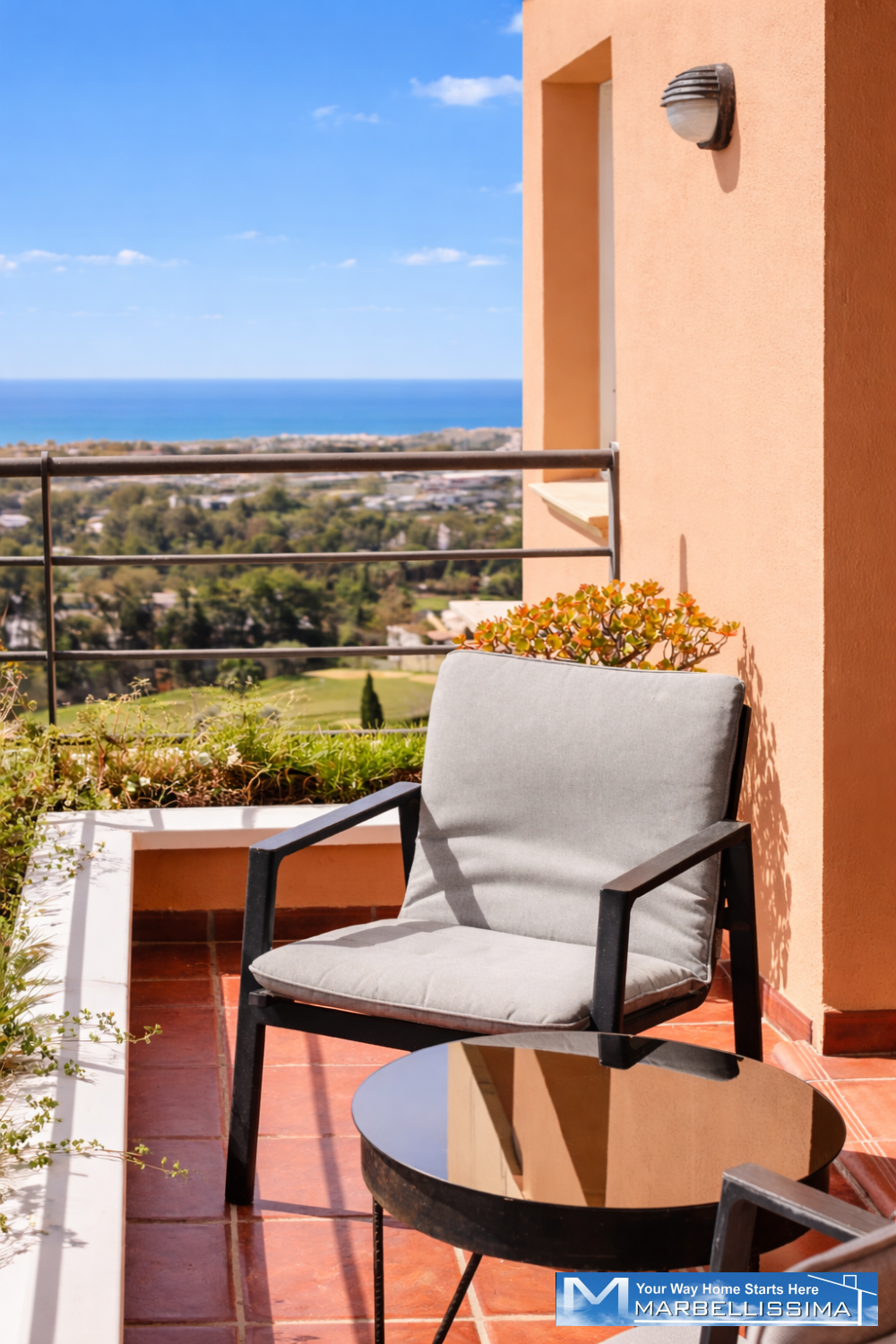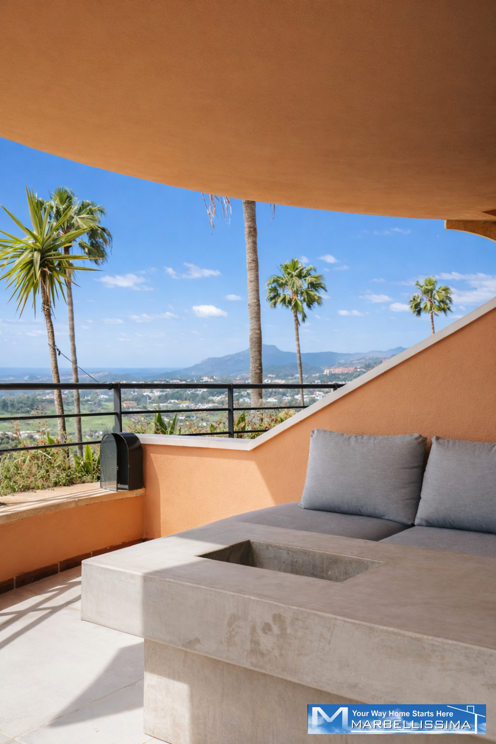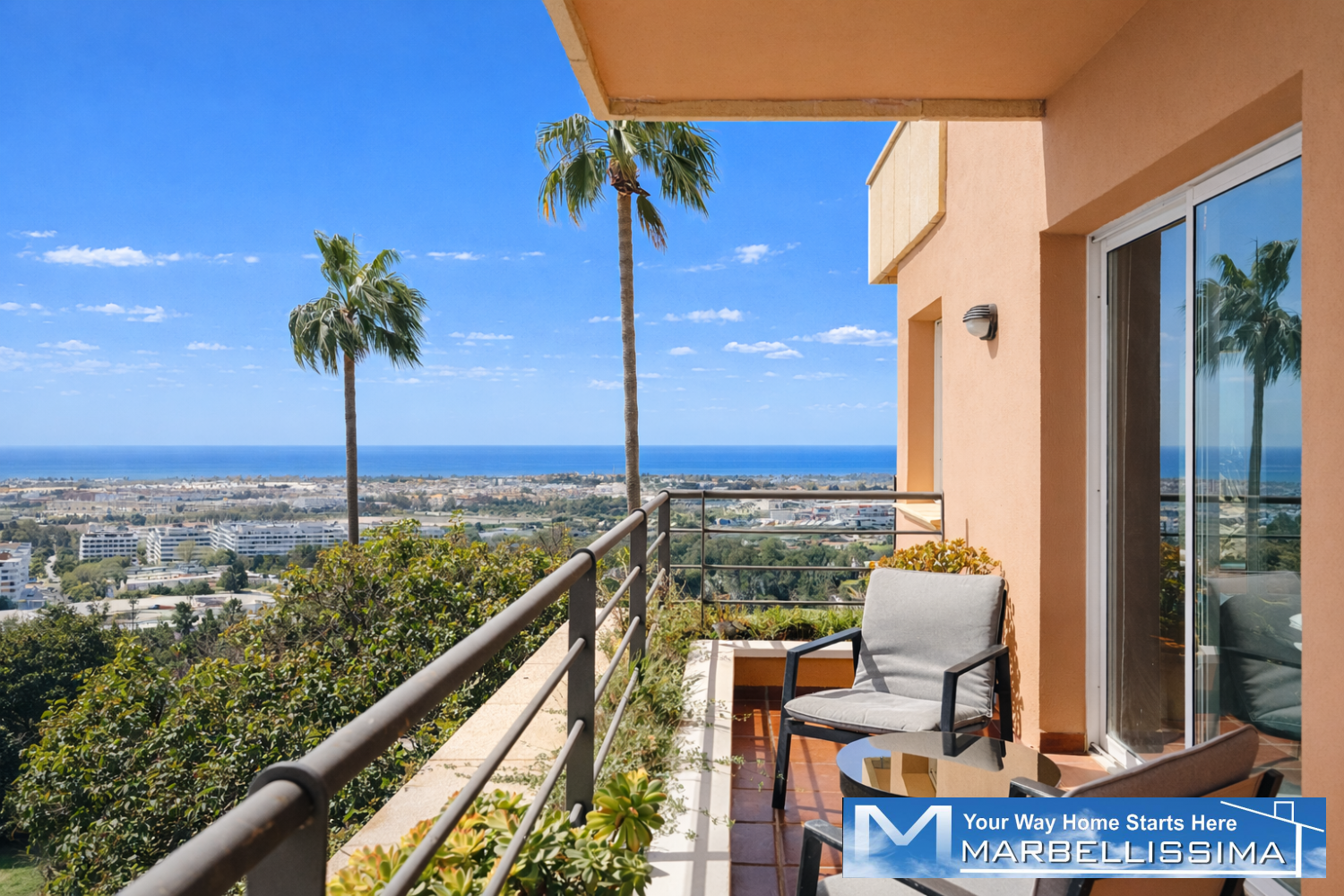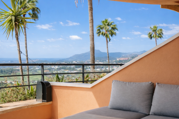 Suuret liukuovet avautuvat tilavalle terassille, josta voit nauttia inspiroivista näkymistä Costa del Solin kesäilmasta ja lämpimästä auringosta omasta kodistasi käsin.