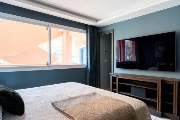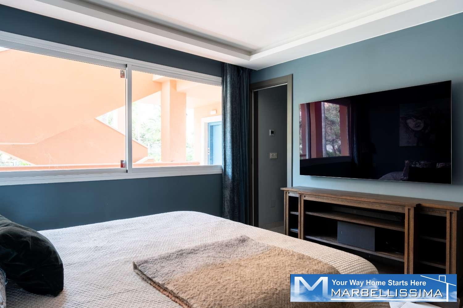 Myynnissä vastikään remontoitu. Lounaaseen avautuva kulmakerrostalo Magna Marbellassa. Golf- ja merinäköala. Pieni huoneisto myynnissä Marbella, 1.350.000 €